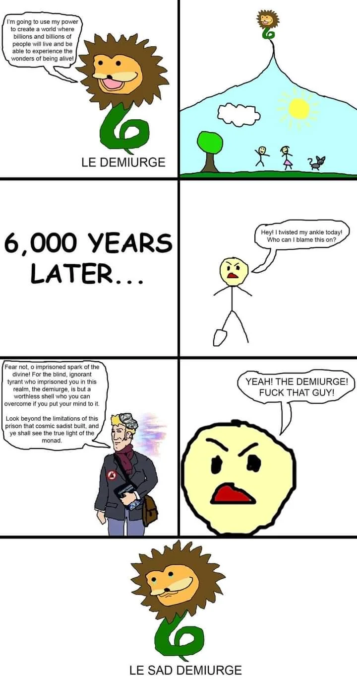 >>287079489>>287069327This series is just Gnosticism for dummies.Except Demigurge was far more malevolent.