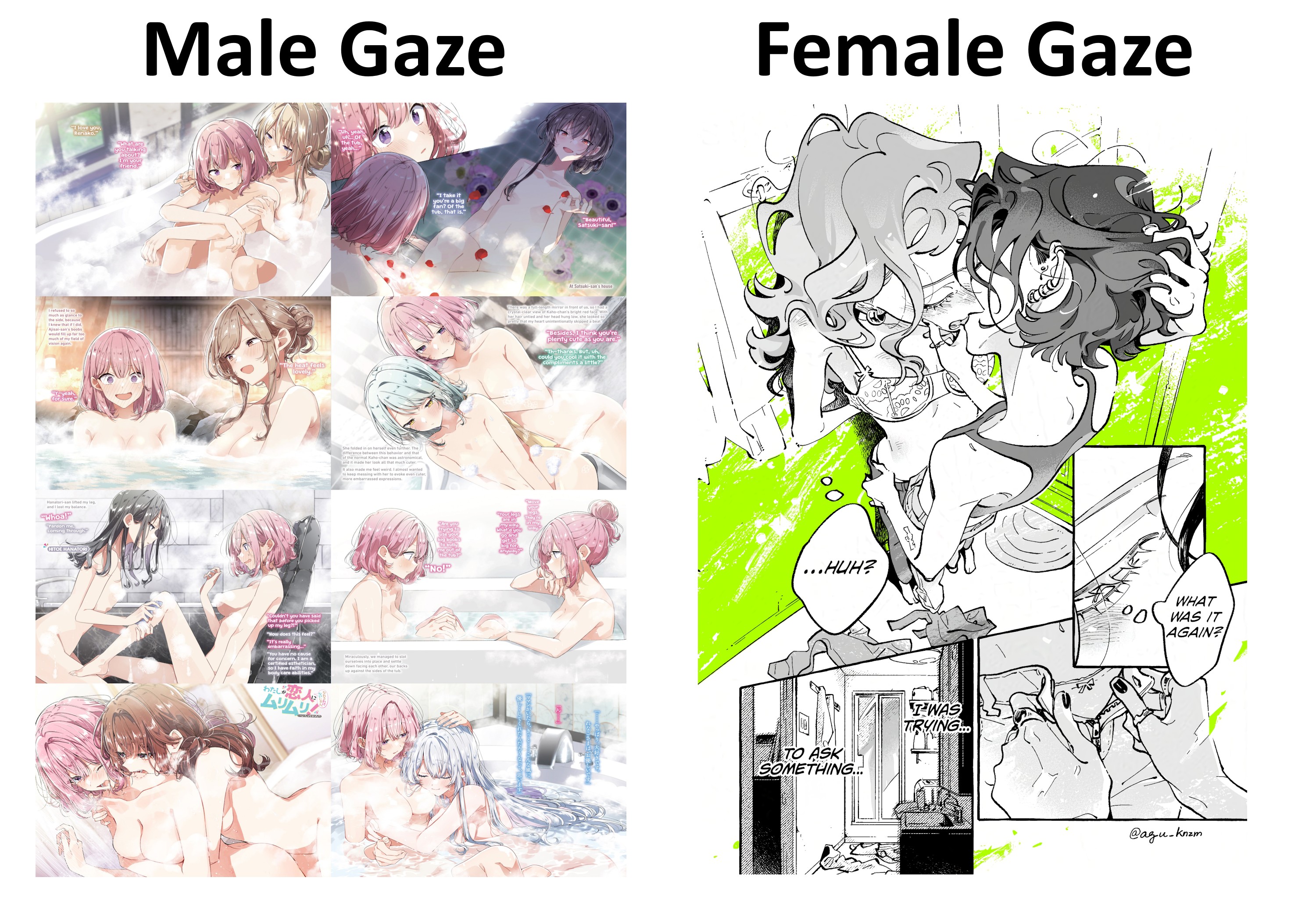 >>287073070>>287077155"male gaze" is one of those weird cultish relics of 80s anti-sex reactionism that's clung to slavishly by twitter lesbians who think everything horny is bad unless it arouses them specifically, and then it must be some magical mystical thing that excludes everyone else.Male gaze doesn't "mean" anything unless you took the wrong lessons from your 201 film critique elective.