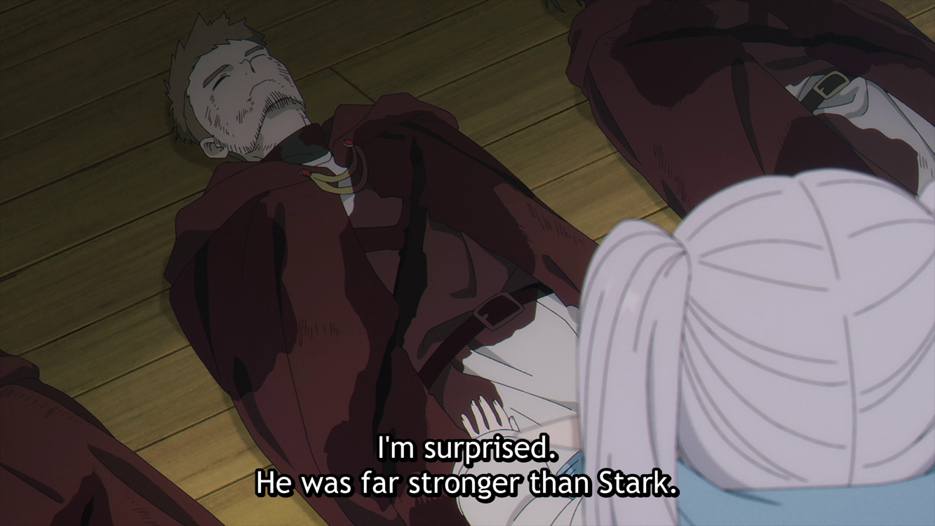 >Every fight>Stark runs in and chops with axe and then gets parryed and he runs away>FREEEEEren floats in air>Aims white death ray>Fires it>It either hit/misses or then Fern follows up and does the same and hits>Reminds me of that time Himmel shit his keks while looking melancholicThe battles are always mid like this.