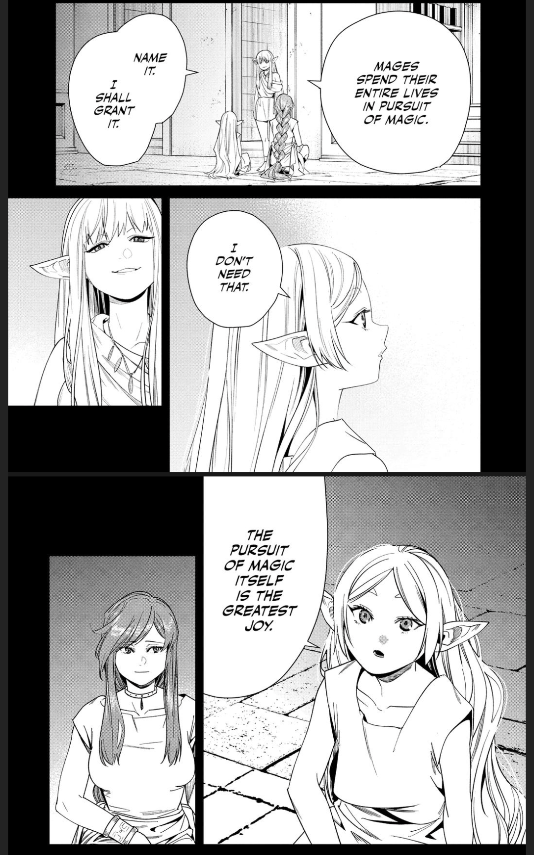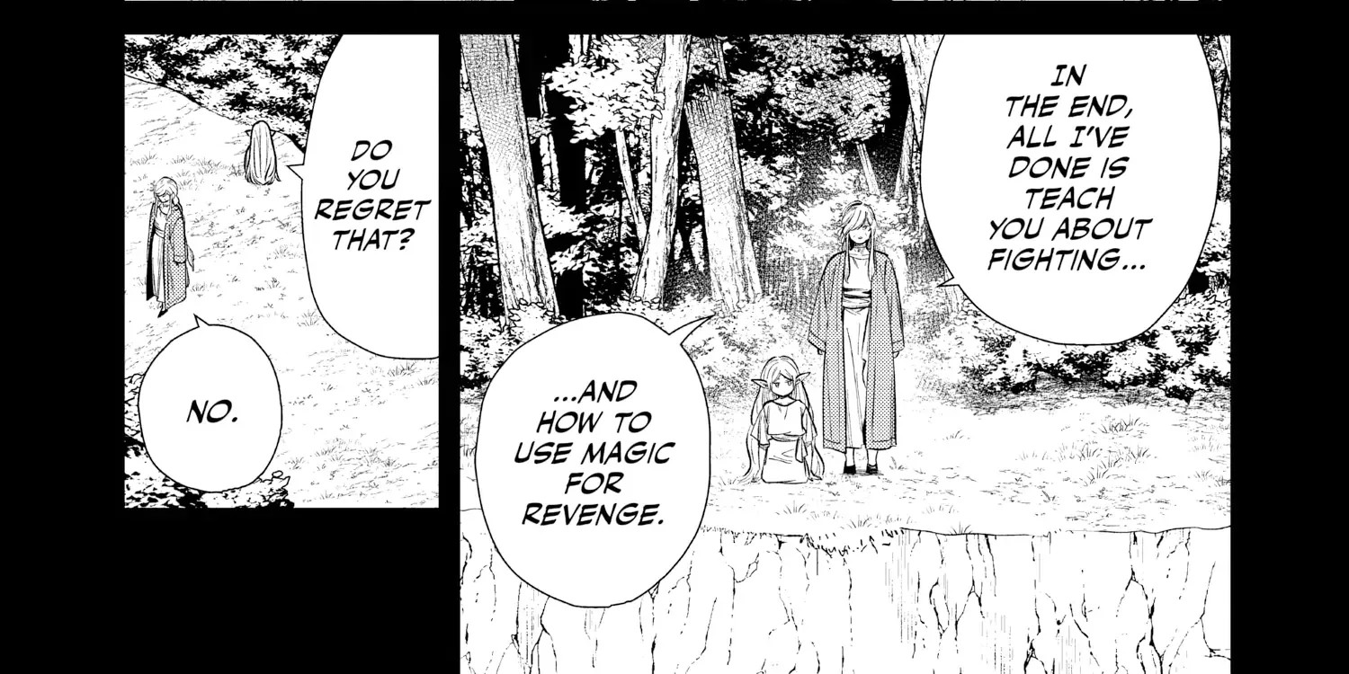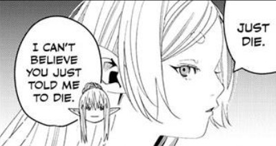 >>287113276>I already engaged with itNo, you didn't.>and everything I posted from the manga showing how off the mark your actually on thisNo, it doesn't. >you dismissed as said it didn't count lolNo, I never did that.>cherry pick, ignore and turn to headcanon Projection. You're outright ignoring Flamme's own assessment and pretend that trying to make amends in small ways (like with the flower spell, which was introduced right after the panel I posted) somehow fixed Frieren. Even though they obviously didn't, and after Flamme's death Frieren was a demon exterminator, then a failed demon exterminator, with no real interest in anything or anyone, until meeting Himmel and the party.And, for that matter, absolutely nothing you posted confirms that Serie and Frieren, even after the latter's character development, view magic differently.