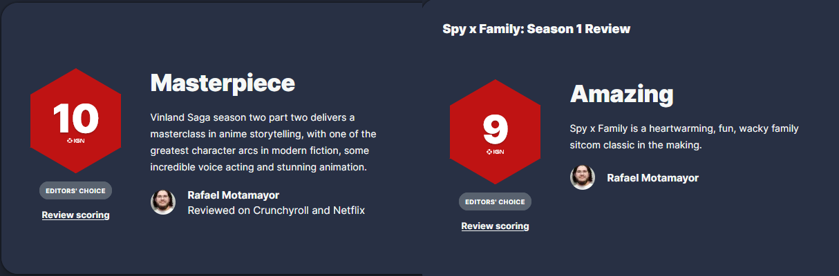 >>287105379seemingly vinland saga season 2, and spyxfamily season 1