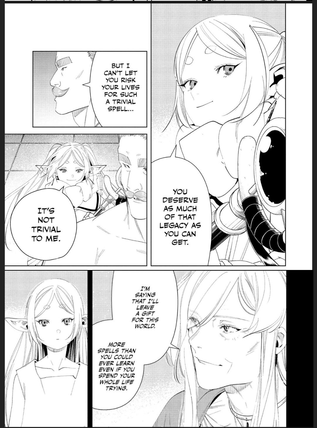 >>287111510That page doesn't count lol Also that's not what I said anyway. Frieren wants to *witness* the evolution of magic, something Flamme massively contributed towards and is most in practice in the empire, where magic is an everyday thing. It's the very thing Serie was against as she believes magic should only be for those she herself deems worthy, this is the basis for their entire clash of ideals and we know why side of the fence Frieren (and the entire narrative of the manga) falls on>She doesn't say, spend time to invent a universal statue-cleaning spell that works on any material and then distribute it.Why does she need to? Her interest is in collecting magic, she created a few spells to solve problems but most of the time she's searching for what already exists. Flamme is the one that stimulated the first wave of magic evolution and it has been continuing through humans lands ever since. Frieren is there to witness that change, something both her and Flamme have explicitly talked about.Now you can keep trying to dismiss the actual manga content but it wont actually change it you know