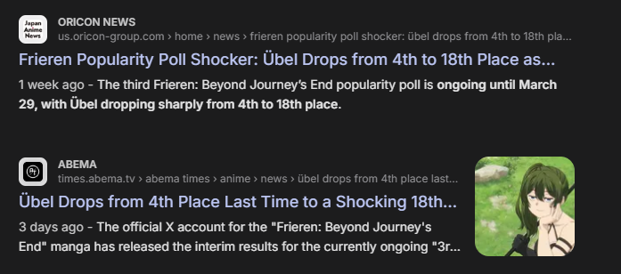 popularity poll 9th place https://x.com/FRIEREN_PR/status/2038546775267500140