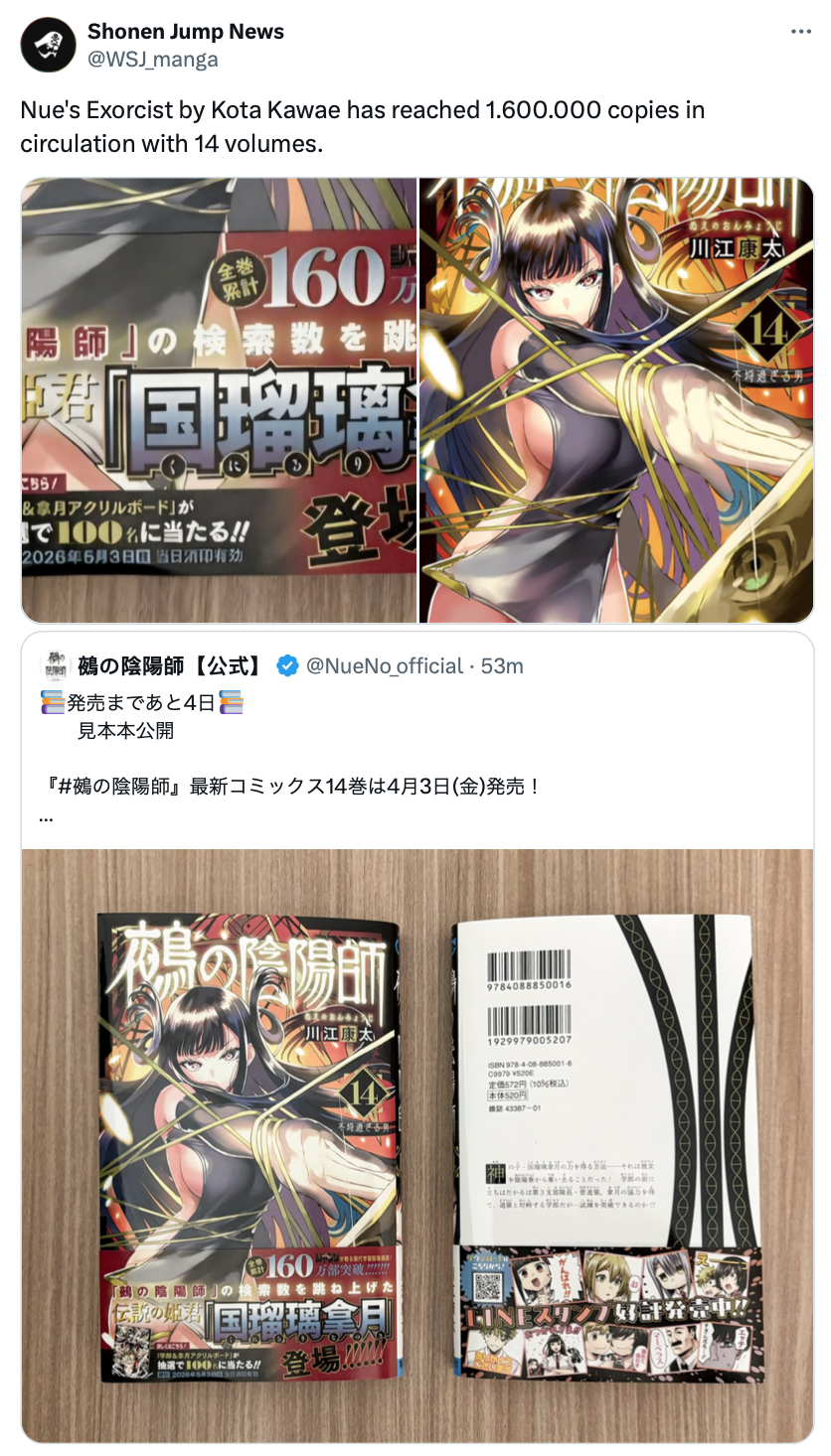 Strong, and i predict that Nue anime will be a success, the series got the nip xitter traction, usually when it's the case the series become a decent success