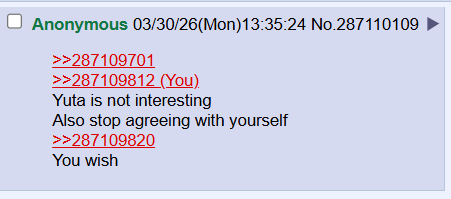 >>287102533>Yuta thread>Immediately an uninteresting shitty threadLike clockwork.