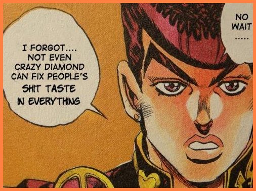 >>287103868>Maki could actually be interesting with more exploration of her backstory instead of dumping it all into a handful of chapters>Nobara comes back way earlier agreed, she doesn't need "muh potential unlocked" she just needs a stats upgrade and to use her technique more creatively>disagree, Yuta needs more actual character but all the seething about him is borderline nonsensical even taking into account retarded agendaposting and shitposts>disagree, past sorcerers needed more fleshing out>agree, gives Todo something to do>agree>Gojo dabbing hard on Kenny would in fact be funny and there should be more followup on that moment in Shibuya when Geto's body took back control for a second and that never gets brought up again like what the fuck>Sukuna sneaking Gojo would be genuinely also really fucking funny but disagree, they should still have a proper fightmost of this just boils down to common sense and Gege not actually fleshing out his cast of characters enough