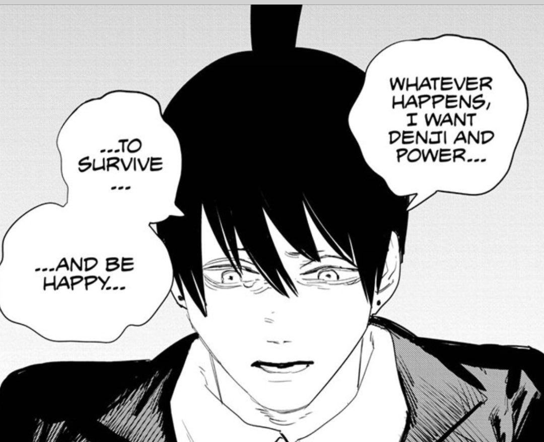 Well of course he was. He’s only happy when he can be Chainsaw Man. He’s like a crackhead who doesn’t want deal with his hard life, and keeps doing more crack to cope.