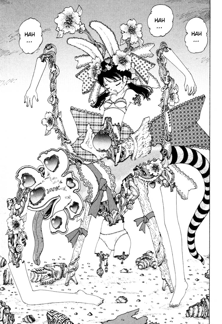 I was here almost from the time it started getting scanlated in the ~17 years ago and I'm still mad. And I'm not one of those "he shoulda fucked that bitch in every hole" kind of readers. The manga went from having a developing plot/character arc, to years of filler sidequests, to literally nothing happening, and an ending that was a middle finger to the audience. You have a story about emotions being conveyed by bodily fluids and a girl saying she's gonna fuck to the dude in the first chapter, and there isn't even any progress towards those goals. The last 80-100 chapters are just going in circles. They didn't need to turn it into an eromanga but there was so much room for maintaining an extremely high level of tension as they slowly explored their relationship with each other. You can basically pinpoint where the story stopped--it was sometime after he kissed her ear during the blackout. Coincidentally, the anime team must have noticed this so that's about where the show stops for good. The whole manga was just wasted potential and mistreating a really good concept.One other thing that jumps out at you is that the author's surrealistic creativity goes downhill about the same time. This guy was known in the industry for absolutely insane panels (pic related) with all kinds of shit going on. He abandoned that around the time MGX started going to shit. My pet theory is he either started taking psych meds that killed his Louis Wain streak, or he stopped taking psychedelics that were banned in Japan in the 2000s.Oh yeah, about the anime: It's great. The art and animation is a very heavily shaded '80s style, the music is some Danny Elfman shit, and Urabe's VA is a one-and-done actress who sounds nothing like an anime character. The fact it stops at the right time is even better.Fucking shit this still makes me angry. I don't know what's worse, seeing your favorite manga get ruined or the author getting abducted by aliens like the guy who did Torima Minshuku.