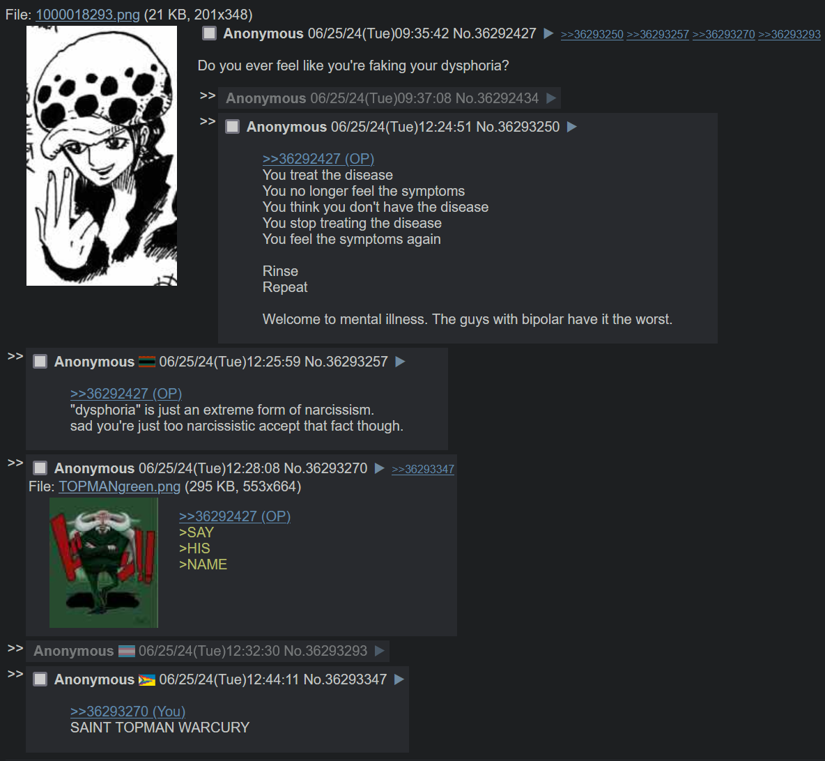 they'll never admit that, they're exactly like trannies who will double and triple down on their mental illness