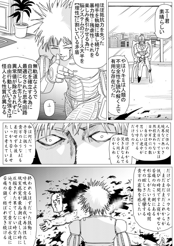 >>287127452Fake Fuzzy straight up mentioned limiter breaking. Now, technically that's a term that Genus came up with, but it's not far-fetched to think that Kuseno came to a similar conclusion, and he's the only other scientist who has gotten a close look at Saitama to try and figure out what the fuck is wrong with him.At this very moment, it seems that Fuzzy is trying to research whatever X-factor truly turns people into freaks, because that element of pure irrationality is a blindspot for Kuseno and all machines.