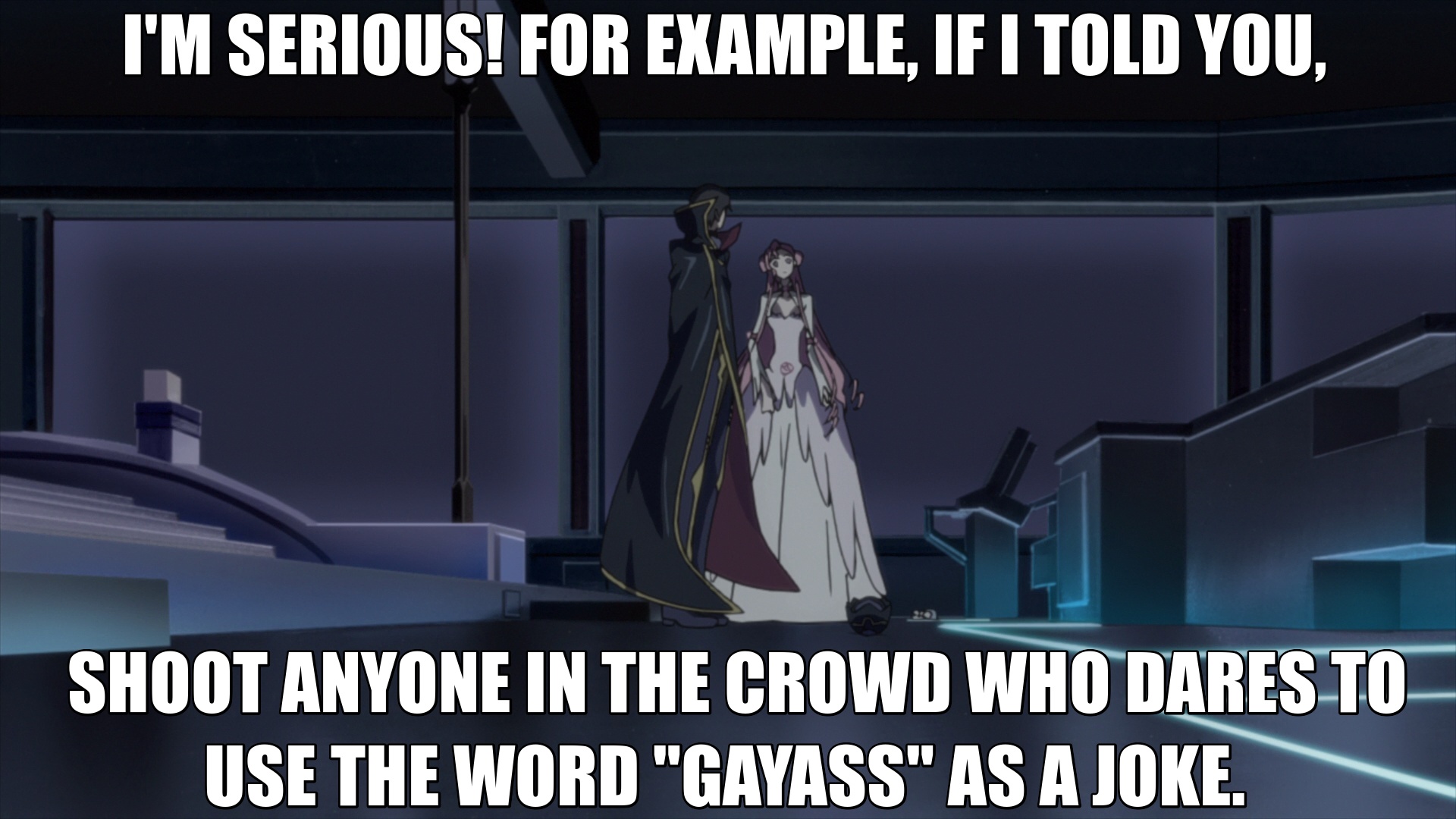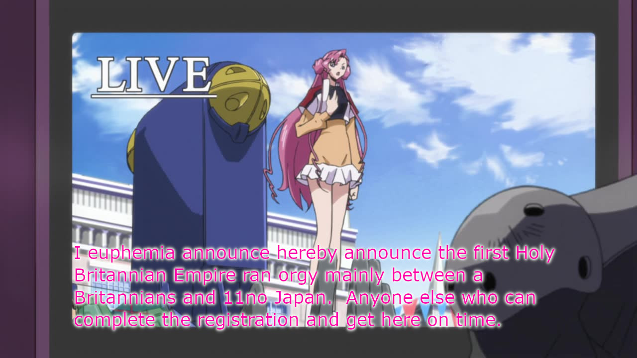 >>287133555If Lelouch really wanted peace he should've joked that Euphemia's command would be to bear the child of Zero.