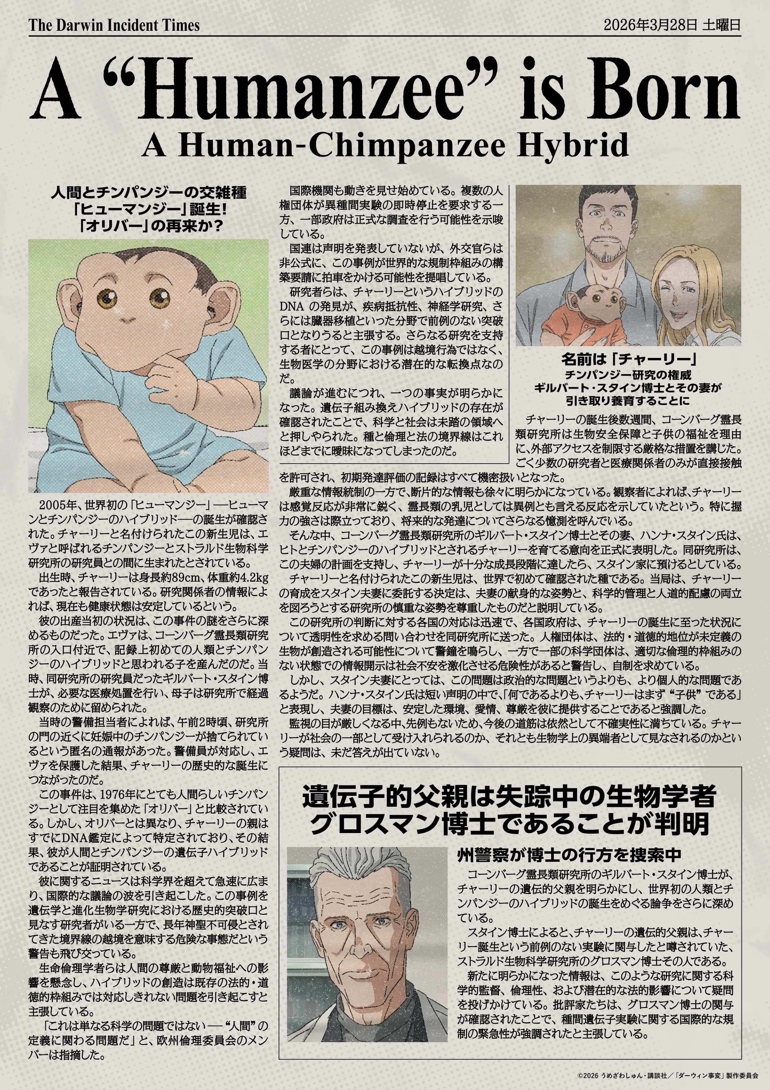 >>287153738Going just from what was said this episode, I assume hermano originally came out largely disabled due to whatever the circumstances of his birth were, the ALA kept him around anyway because having any kind of humanzee is a big deal, and eventually the Korean doctor did some morally questionable surgery to graft on the functional parts he was missing (which is also why he's more human-shaped than Charlie). Only thing I don't have a clue about is why they weren't able to do that until recently if he's been there for years.