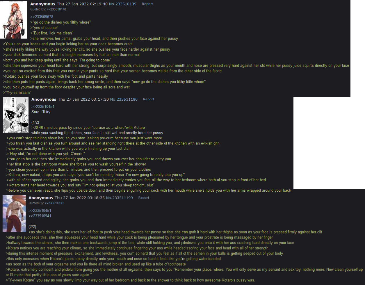 >>287166086I can't wait for the male MC to get his virginity taken and his cock sucked by that woman.>>287166193Some muscular woman oni put a turnip on her pussy to show some guy what it would look like after she's done with his cock.