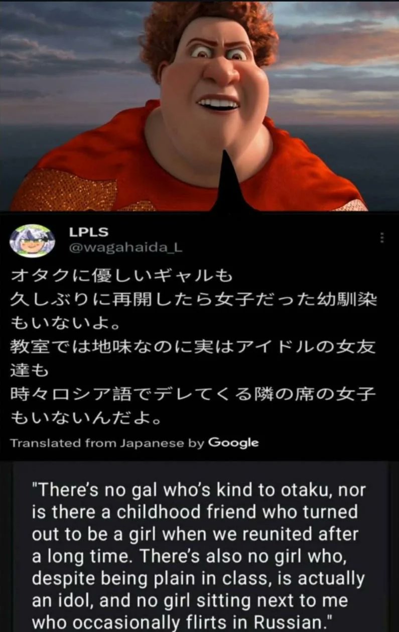 >ちなみに作中のギャルとのシーンはところどころ実話です。すみません。小生の人生はオタクに優しいギャルが周りに割といました。皆さんのことを裏切ってしまい大変申し訳ございません。>By the way, some of the scenes with the gyaru in the story are actually based on real-life events.>In my own life, there were actually quite a few "otaku-friendly gyarus" around me.>I am deeply sorry for betraying all of you.From the author’s Fanbox. I’m pretty sure this is in reference to pic related