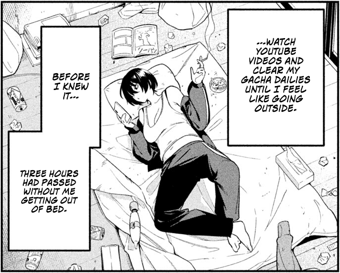>>287186986>job, clothesShe just hides her real self during work.>debt slaveryShe also saves no money though because she spends it all on otaku shit and on Rihito.>last twoAre we talking about girlfailures from different manga? I was assuming we were talking about imouto and Tachibana.