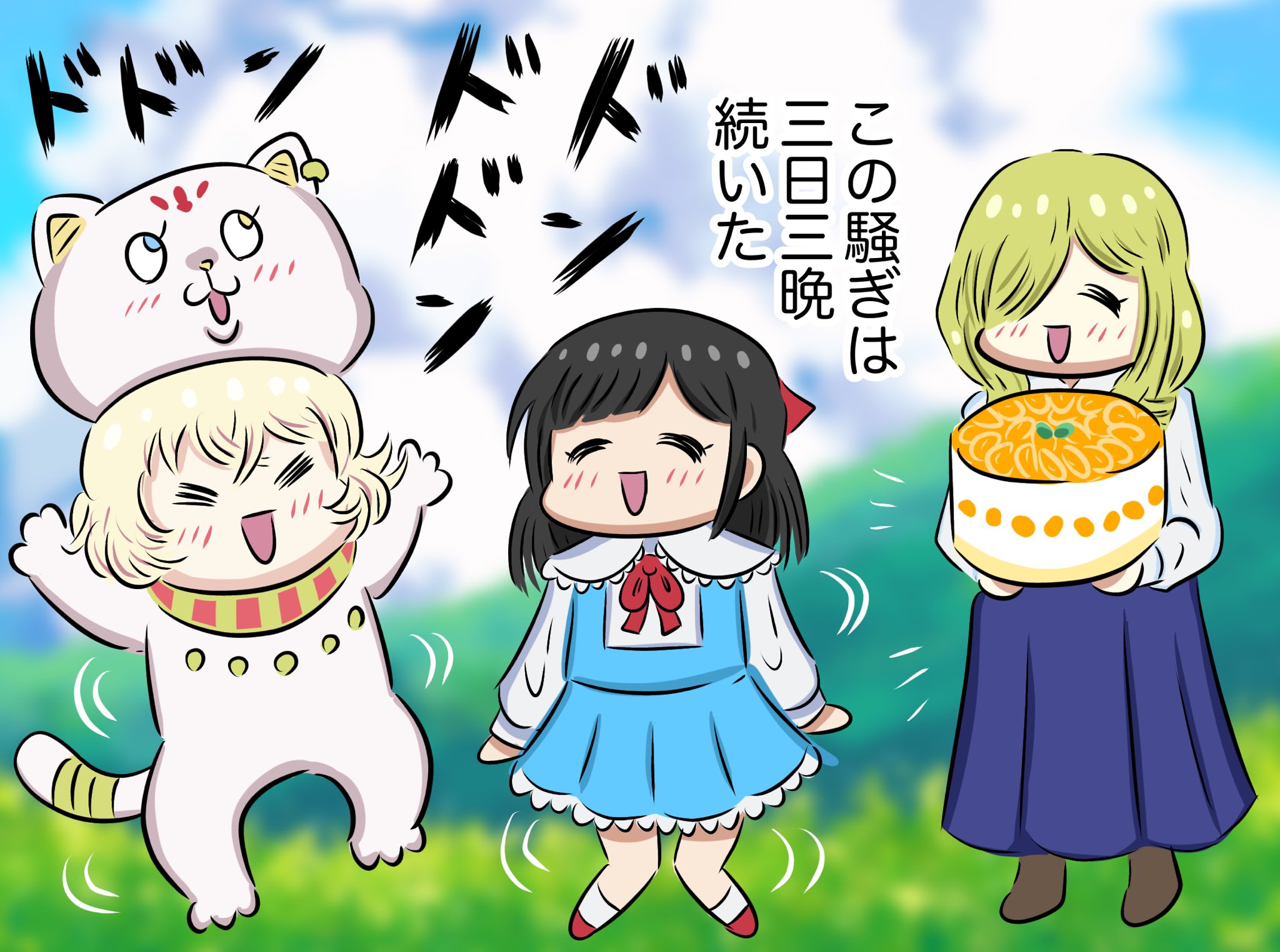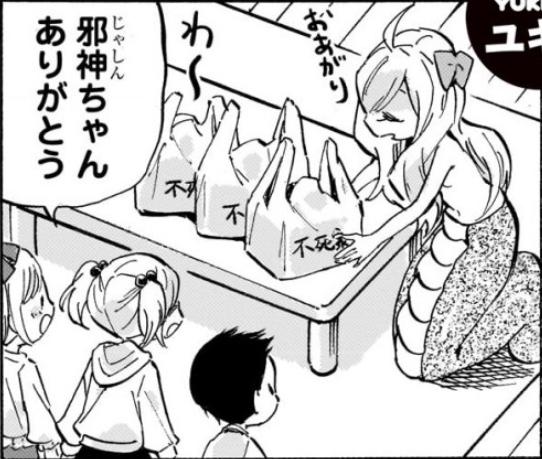 >>287154509It's funny how Jashin-chan says "おあがり Oagari/Have some" to the children."Oagari" is a polite and gentle word, and it sounds like a grandma offering food to her grandchildren.