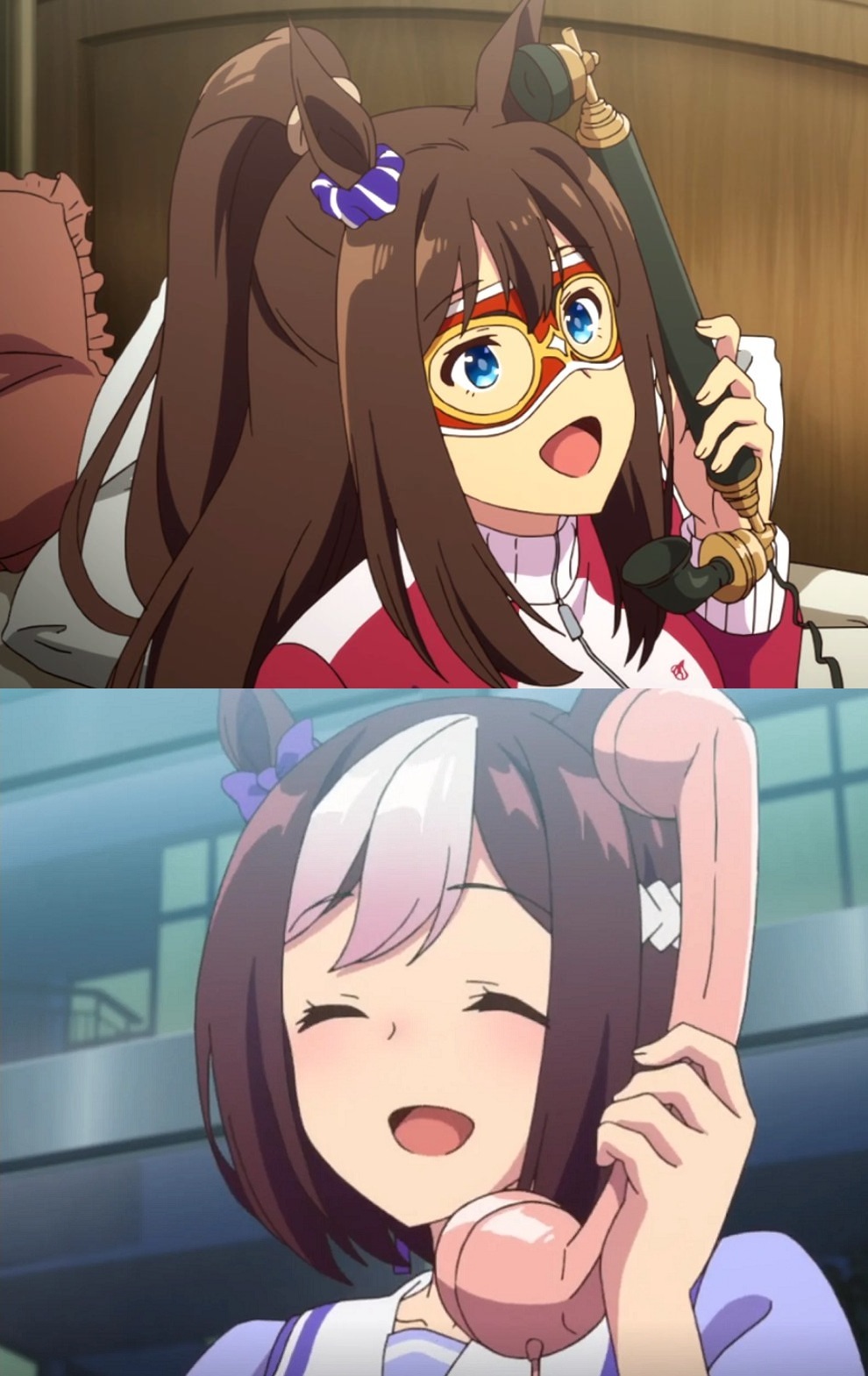 Design-wise, having only animal ears only works if they replace the human ears, so are lower on the head. You can't just slap them on top of the head, otherwise you end up with situations like Uma Musume where they always need hair covering that part of the head that would feel unnaturally blank if you could look at it and there weren't an ear there.Kemono Friends had an in-universe lore explanation for the 4 ears issue, although this isn't really necessary. You can just have people with 4 actual ears if you're doing fantasy animal people.