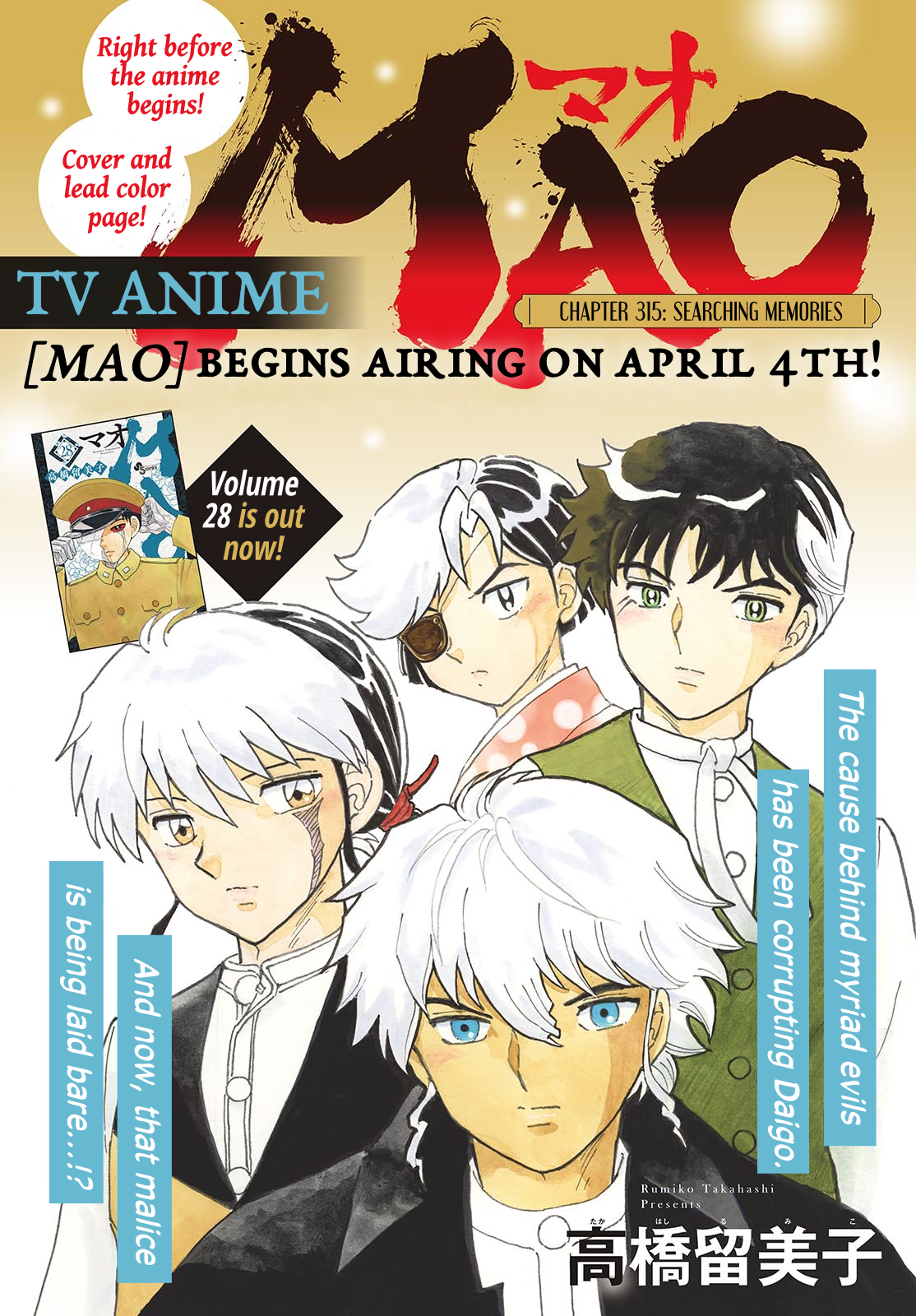 Mao was on the cover of this week's Sunday to celebrate the imminent start of the anime!