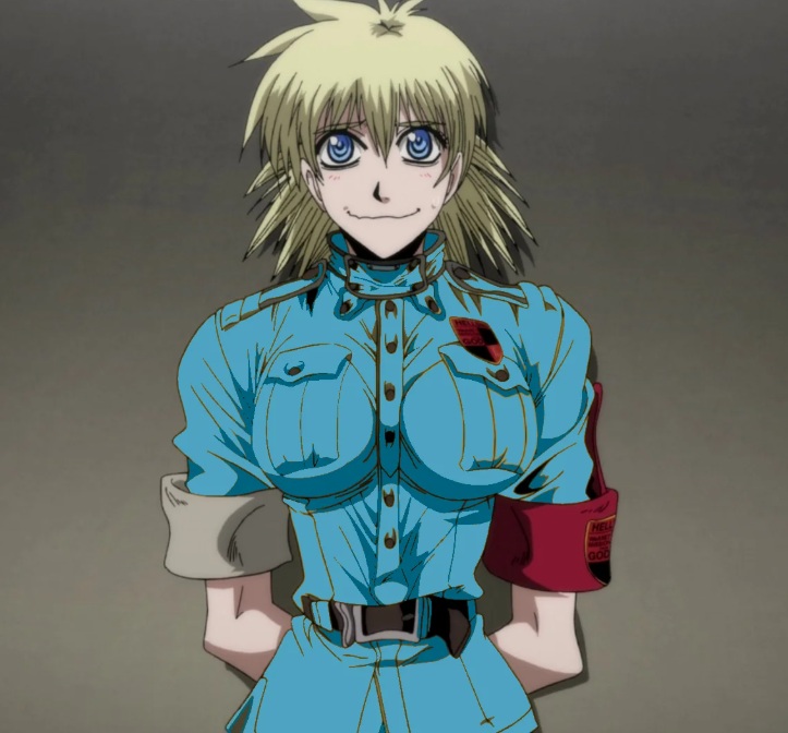 Seras is hottest in her 2001 tv show incarnation with her blue uniform but your pic is a bad edit of her Hellsing Ultimate design.