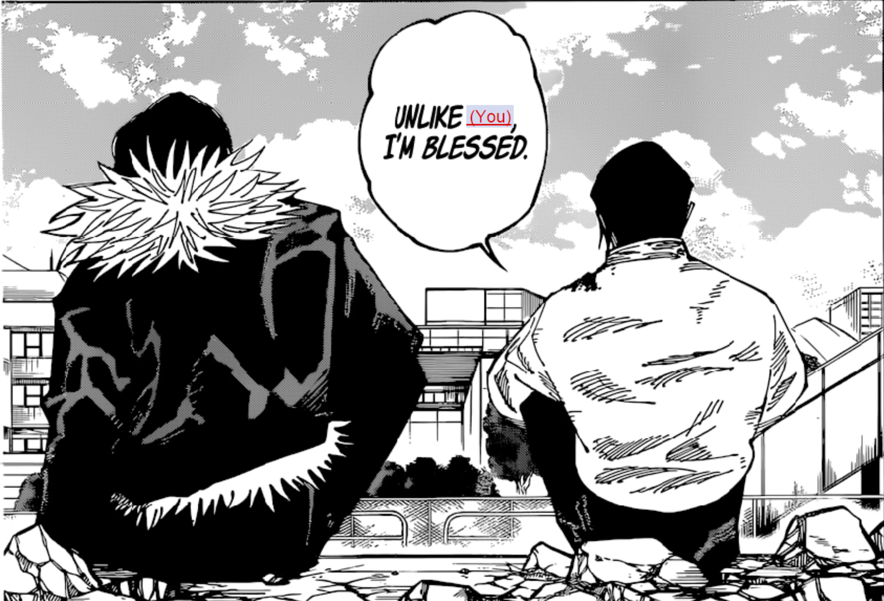 >>287176476>Why didn't Yuki get any blame for what happened?Kenjaku basically killed her, with Geto's technique no less. That's her karma for what happened between her and Geto. She even addresses Kenjaku like he's Geto. People keep ignoring the fact that Geto's character threads get carried over to Kenjaku.