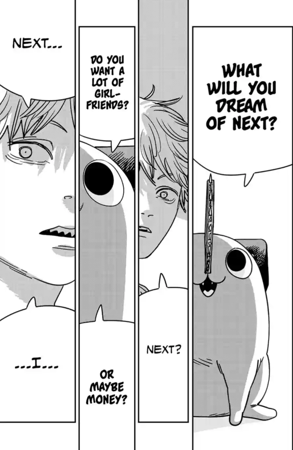 >>287197261I think we should read Denji wanting something that combines friendship with a sexual relationship should be read more as him longing for some kind of mutually affectionate relationship but struggling to describe it, due to his own perception of intimacy being so warped by his upbringing and Makima's affect on him. In the same vein as Power calling Denji her buddy but meaning a deep, self-sacrificing affection and not the casual way normal people would use the term. I don't think this is a particularly forced reading given that characters not knowing how to classify to describe how they're feeling or what they truly desire is something that's recurring in both part 1 and 2.