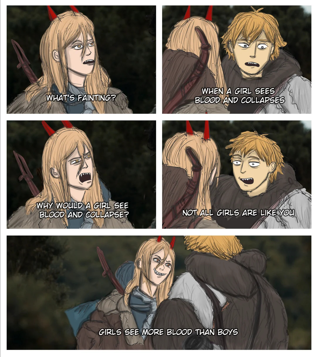 >>287197240>>Denji's wife: PowerPower doesn't like Denji romantically. She didn't in the original world and doesn't seem attached to him at all in the new world.