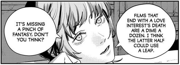 >>287196073peak but two noteschainsaw man didn't erase the concept of war since he never ate yoruasa is not disgusted by the concept of sex but she fears letting someone else inaside from that 10/10
