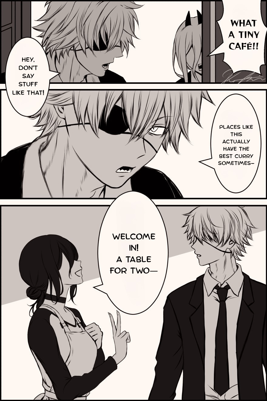 >>287187297Yeah, and it's the smallest little concession but I'm taking Power's cravings as the sign that their next time will lead them to her. I'll just imagine that picrel happens, followed by her and Denji locking eyes and mutually having an "I know you..." moment. The rest is just a truly innocent romance between an awkward Denji and Reze, the actual waitress. No bombs or chainsaws, just flowers and coffee.