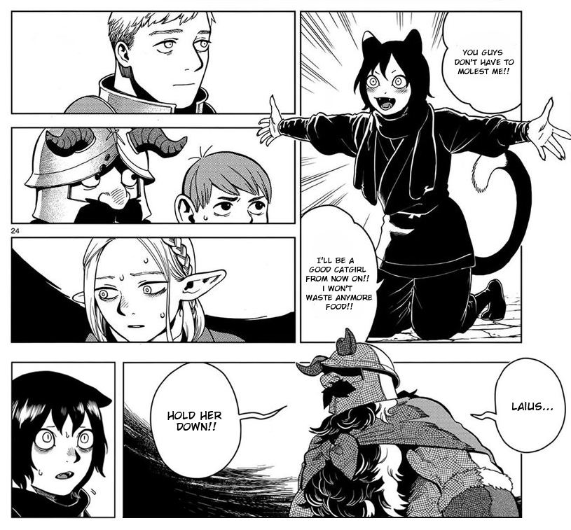 >>287244021They butchered this scene in the anime by cutting out her purring!!!!They got Laios to bark god dammit! Izutsumi should have purred!