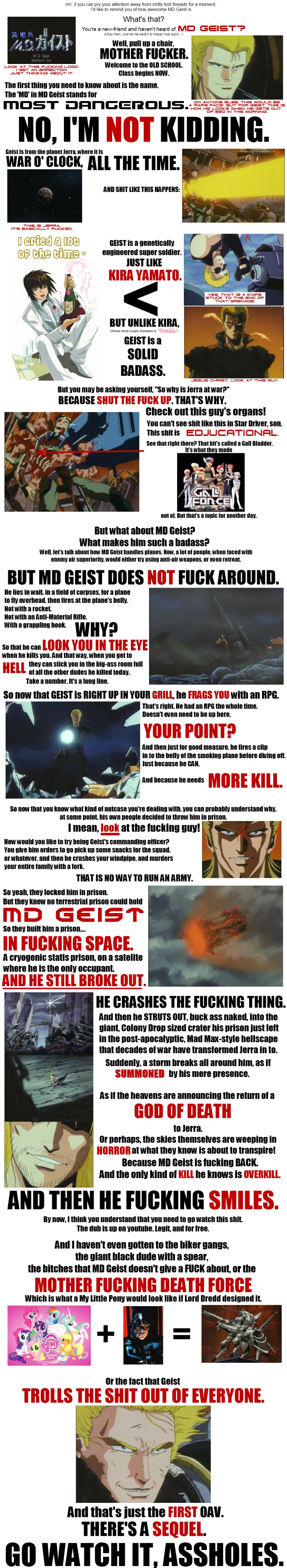 >>287188134M.D. Geist has this weird trend in that combined with endless shilling and not being a major thing in Japanthe early 90s and 2000s anime western community deemed it the worst anime ever made but around 2010 the manime trend was starting to rise combined with I believe some channels actually reairing Geist too