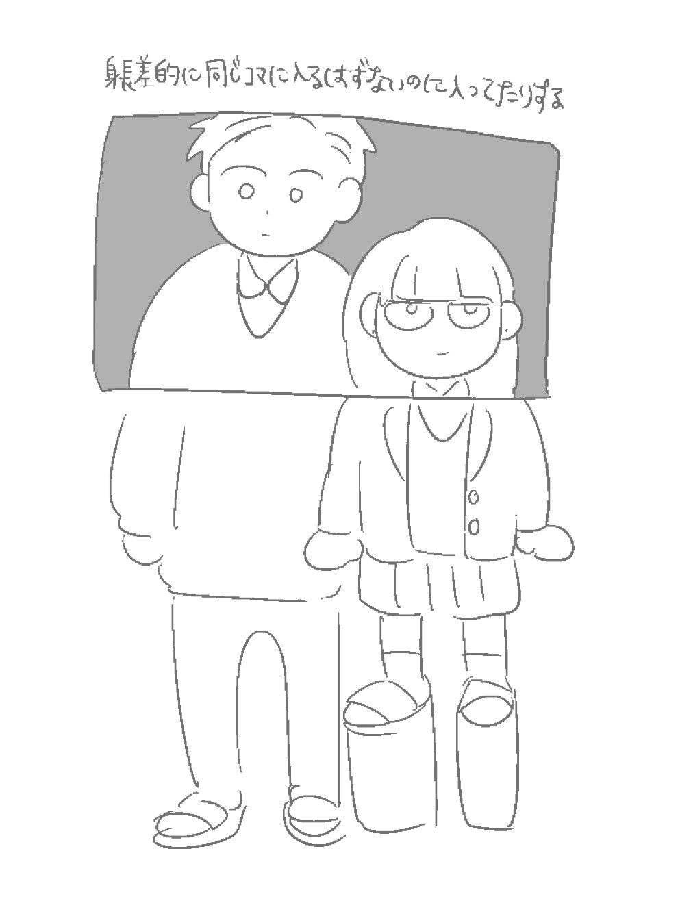 >>287220568Probably just a reference or reused designs (in either direction I don't know which came first), we know it's not the Polar Opposites school, and it can't be them in middle school since they didn't attend the same one (Sato was in Suzuki's)At best you could say it's a young Nabe as a parasite who latches onto cool short haired girls wherever she goes