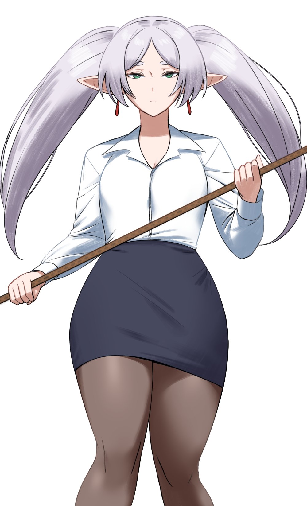 I need a procedural with Maomao as the serious detective, Frieren as the easy trigger and some voluptuous slut to make them seethe.