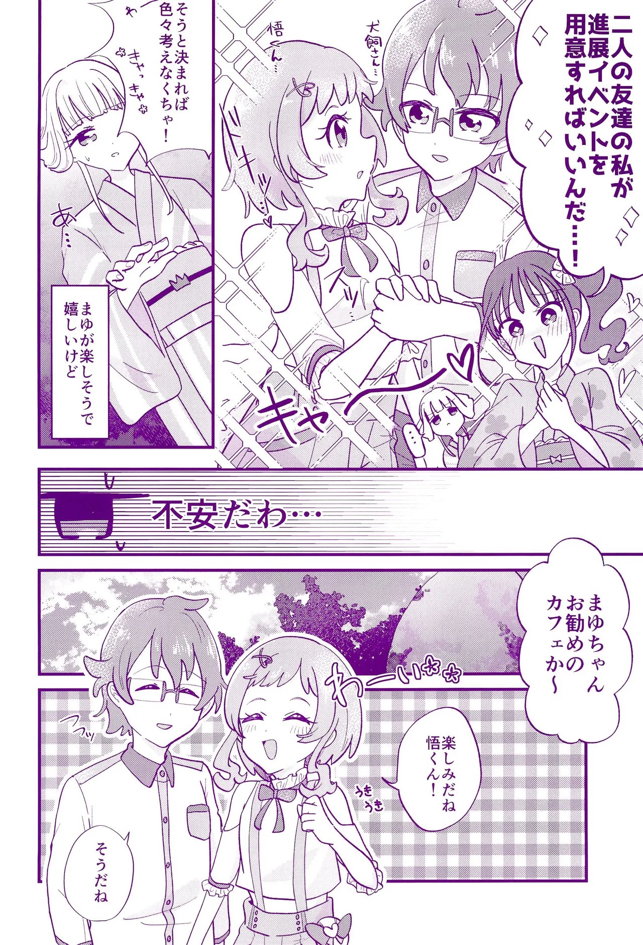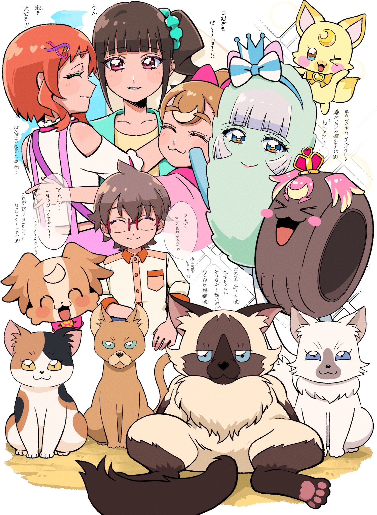 >Komugi: Mayu, you don't have a Special Wonderful person right>Yuki: She does not!>Komugi: Why are you answering, Yuki?>Yuki: We keep in touch every day, I know everything about her.>Mayu: You're right... I don't have someone...>Yuki: it has to be someone with patience, as Mayu is doing embroidery for hours. It has to be someone who loves cats, someone with cat allergy is out of the question. It has to be someone who can entertain me. It has to be someone who can defeat me!