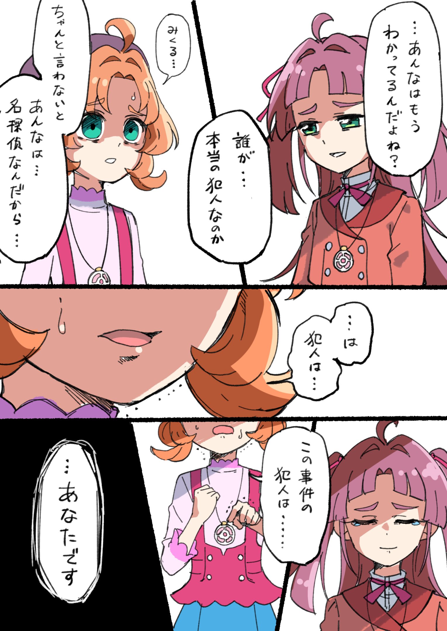 >斉木萌絵という女性が依頼人としてキュアット探偵事務所にやってきた。>依頼内容は「母親の自画像について調べてほしい」というもので、萌絵が持っていた写真には、クリスティーナ・ピポポヴィッチ文江という、30年ほど前に海外で人気があった画家の絵が写っており、風景画しか描かなかった母親の文江がなぜ一枚だけ自画像を描いたのかを知りたいという。>書店や絵画教室に向かったものの手がかりを得られなかったあんなたちだが、途中で帆羽くれあと出会い、パティスリーチュチュを訪れる。>くれあが持ってきてくれたマカロンを見て、萌絵は文江がときどき海外で買ってきてくれたいびつな形のマカロンを思い出す。>「実は手作りのマカロンだったのでは?」と聞くあんなたちに対し、母が作っているところを一度も見たことがない、という萌絵だったが、実際に絵を見てみれば手がかりが見つかるかもしれない、と考えたあんなたちは、萌絵の住むマンションを訪れる。Staff脚本:佐多賢人演出:渡邊智喜絵コンテ:村上貴之作画監督:赤田信人、廣中美佳、ノエル・アンニョヌエボ美術:中林由貴