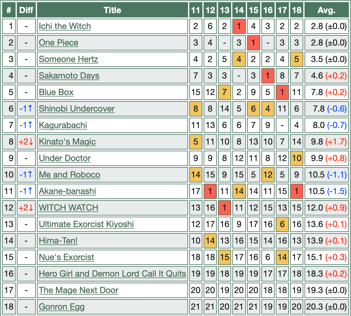 TOC:Roku no Okashi na Ie (Cover & LCP)Someone HertzOne PieceKagura BachiMe & RobocoMadan no Ichi (CP)Blue BoxSakamoto DaysAkanebanashi (CP)Under DoctorKaigeki no KinatoShinobigoto (CP)Alien HeadbuttNue's ExorcistExorcist no Kiyoshi-kunHimatenJKOsoegawa (axe)Next issue:Cover & LCP: Natsu no MushikagoCP: Roku no Okashi na Ie, Nue's Exorcist, Shinobigoto