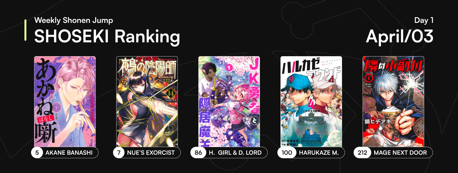 >Roku’s House of Oddities by Atsushi Nakamura (Agravity Boys) joins the weekly lineup on Sunday! When a scientific boy sets out to prove that curses aren’t real, he discovers that the haunted legends hit close to home… literally!https://x.com/shonenjump/status/2039863843971817634Image is in >>287203610