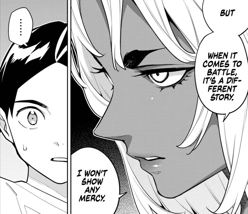 If you think about it, Fubuki had no actual feats so far. I guess she's beaten her daughter and her retired out of shape mom... Sparred with Kyouka/Tenka and killed some fodder Shuuki/devotees but that's pretty much it. This chapter sets up Bell as well, so worst case scenario Fubuki either jobs entirely or assists Bell in a 2v1.