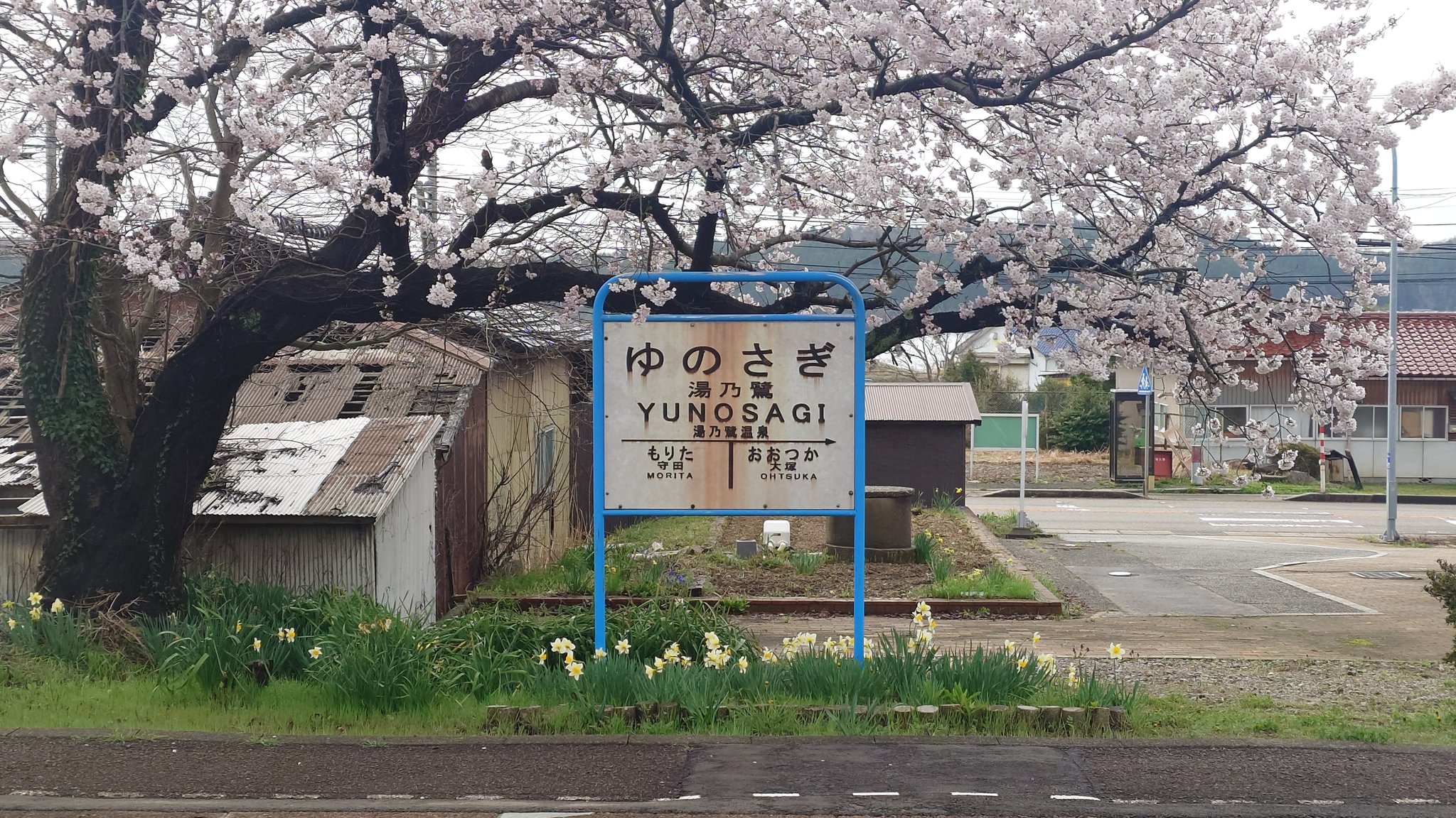 The cherry blossoms are in full bloom at the station right now.