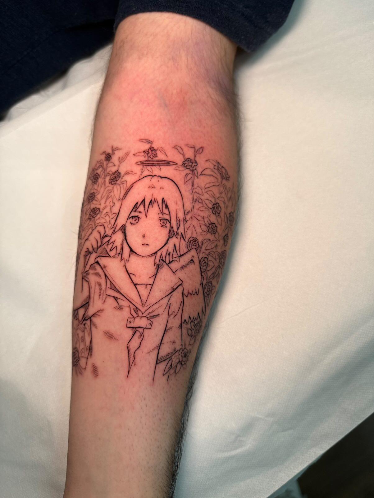 >>287231054Haibane renmei came to me at a very difficult time in my life. It was back when my life was coming apart and I would spend most days with guilt eating at me over things I did. I was even contemplating suicide for a while. Haibane renmei pulled me back into life by having me face the reality of my situation. Having characters wandering aimlessly looking for forgiveness that never came until they all realise that the only one person they had to seek forgiveness from is themselves made me realise I had to do the same. Since I decided to forgive myself I have a different outlook on life, and that's been really helpful. Losing everything, even your identity, is really helpful when you have to confront the darkness lurking in your heart.I don't think there will ever be another piece of media quite like that. I'm forever grateful for coming across it. I've been collecting all the doujinshi and merchandise and even got a Rakka tattoo (pictured)