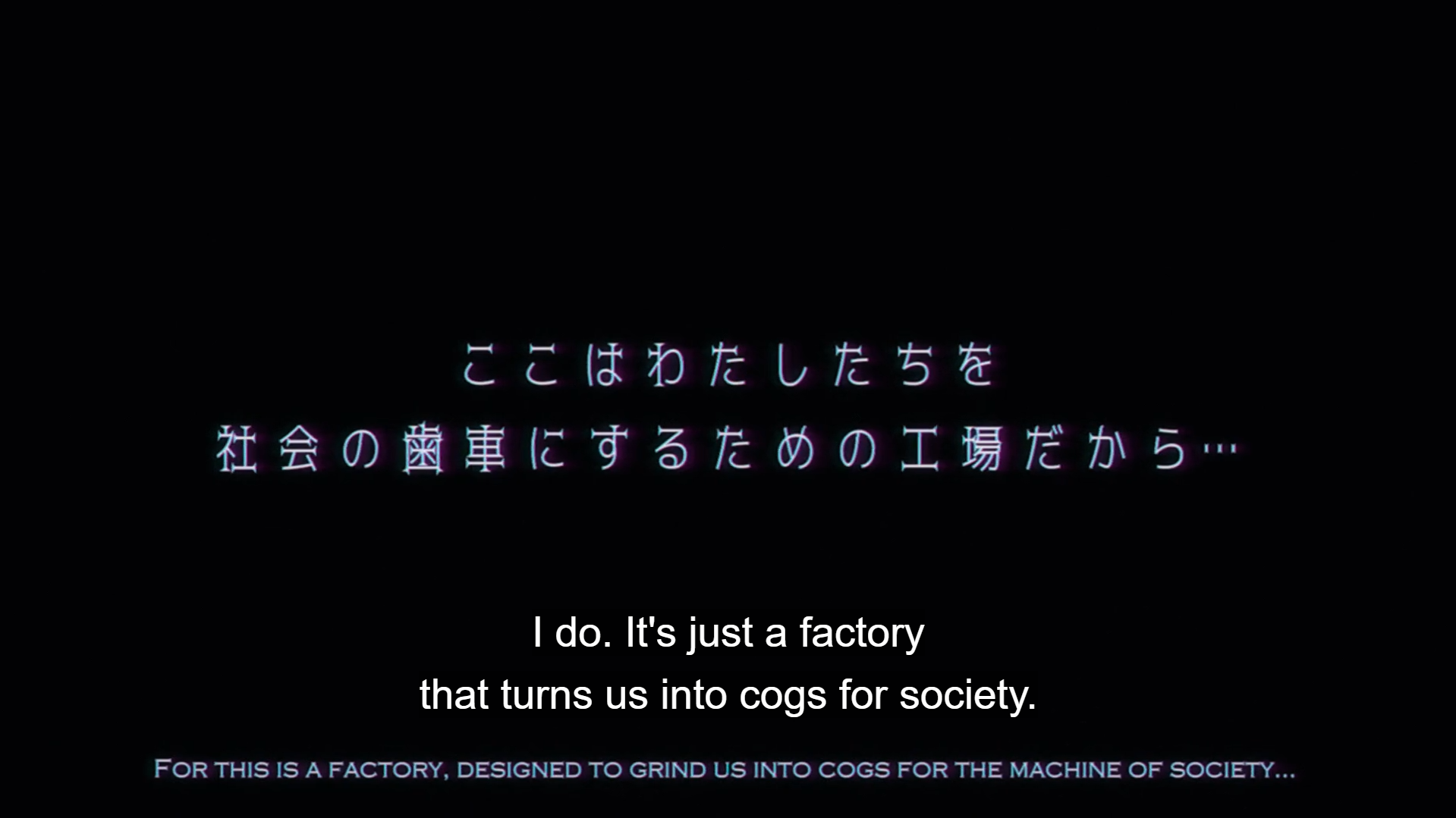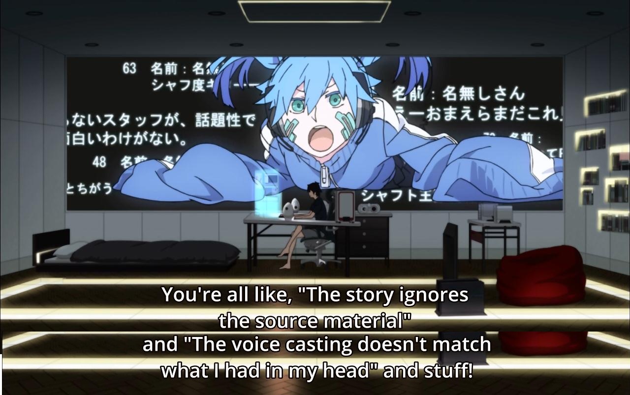 >>287245687the only reason I think anyone is trying to compare it to SHAFT in terms of direction is because it does a lot of viewpoint cuts but that really isn't a SHAFT thing. They just end up thinking it's SHAFT-like because it's narrative heavy talking about complicated topics? fuck if I know.in terms of direction this probably feels closer to baccano than anything from SHAFT.