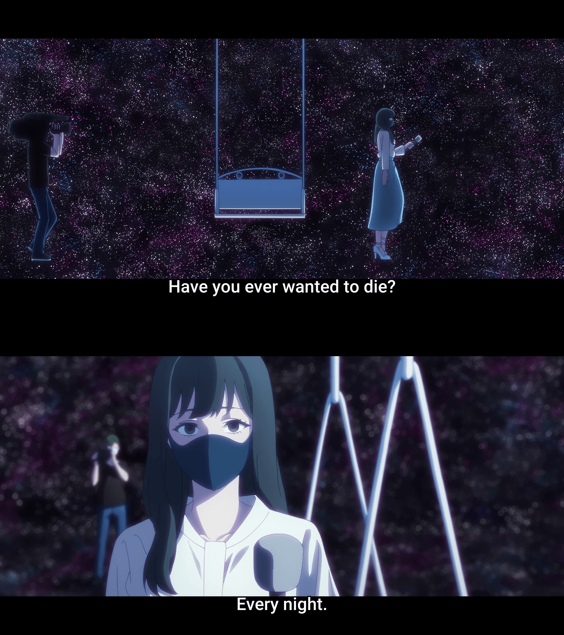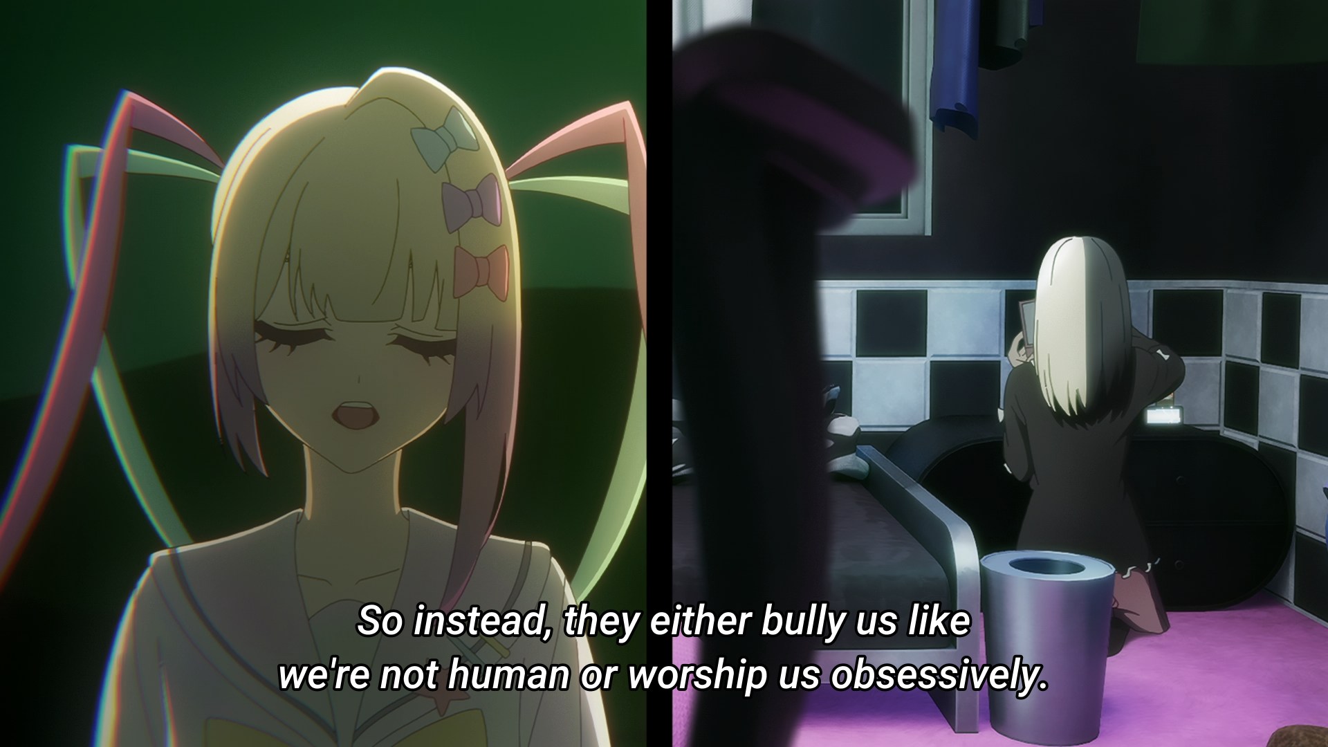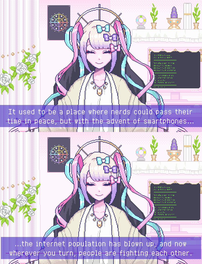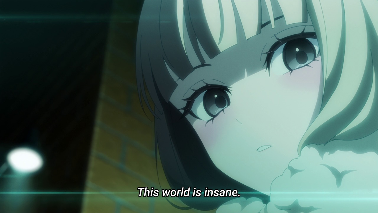 I don't know why I find it pretentious. It does have the same interpretation of the gane as I had in 2022, when I read it. But, SHAFT style outside of SHAFT that are not made by ex-SHAFT staff feels like a forgery.It's the only anime that references vaporwave, though.