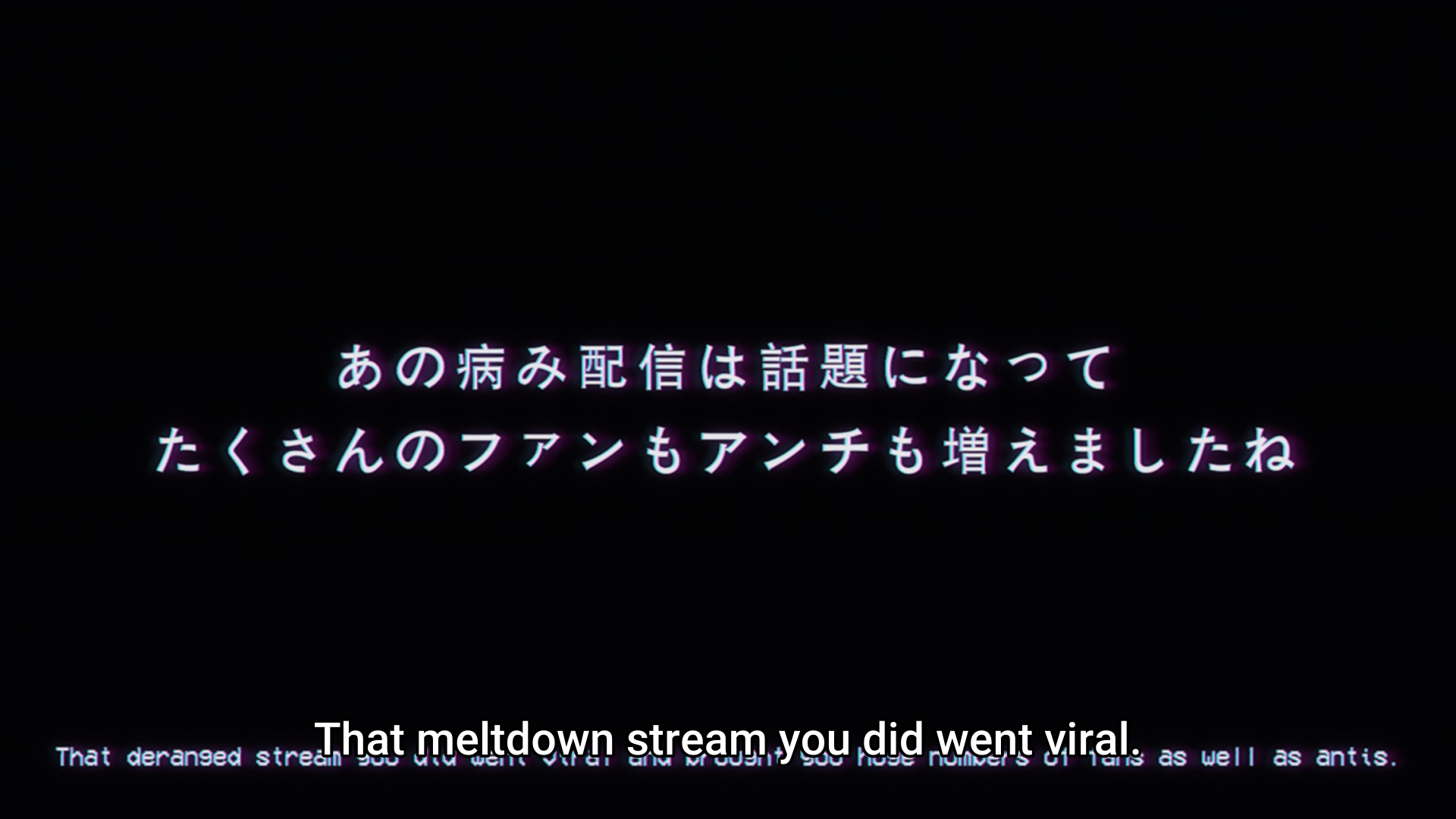 They already been showing a film edit for a few weeks in japan of the first three episodes. its completely anime original, with a new setting, new characters and half live action, going full schizo and scenes of implied sexual violence with all theses new characters, there are literally some people saying its the new eva. now lets see if thats. new ground compared to the game though, theres a whole thing of the government treating influencers like a mental disease thats gonna corrupt the population