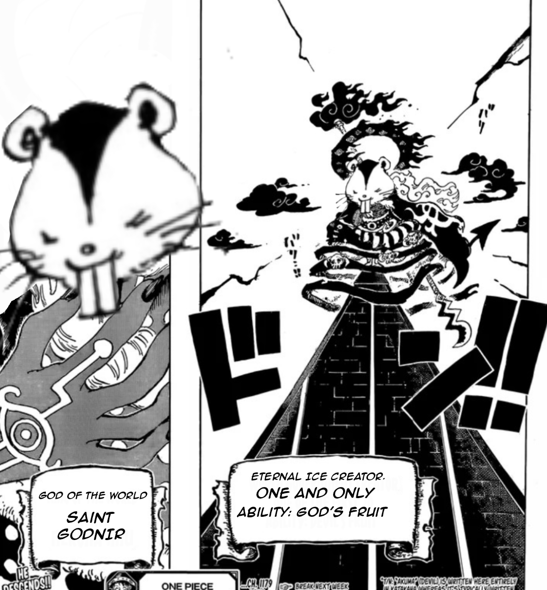 >>287240742Gorosei: ''That fruit has escaped our graps for centuries. We changed its name to ''Yami Yami no mi'', but in reality it's the ''Hito Hito no Mi: Model Fat nigga. The freshest of powers''