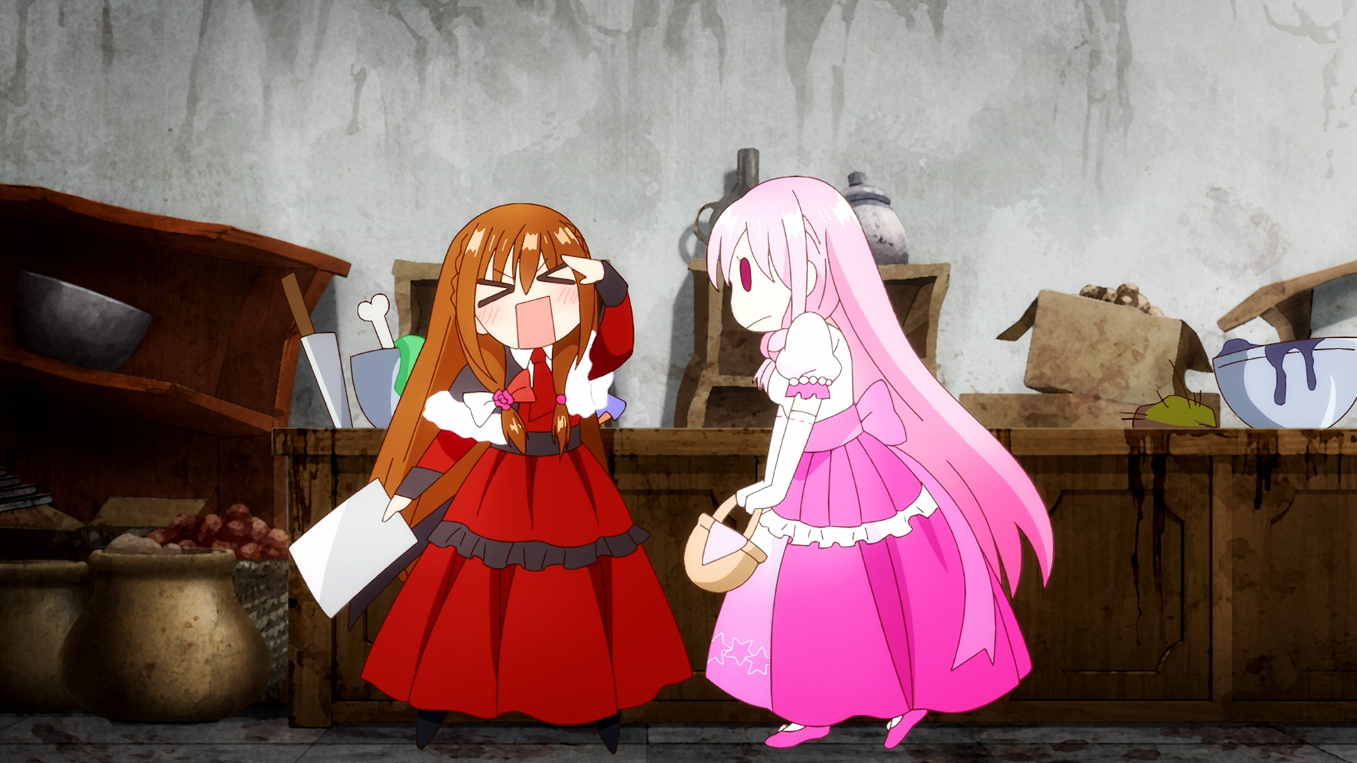 A instrumental or female vocals version of this song might be a banger. The male vs feels a bit too gay to blast in the truck.It sounds like the VAs are having so much fun with these silly lines.Nice the walking animation with her autism mask is just sliding along high enough we can't see her legs.Not what I expected from a shrinking potion. I never had a birthday party with friends. Then again why would anyone want to go to the poor kids house. What did you do when you got sick anon? My dad would put the old CTR/VCR combo TV in my room and I would watch public access all day. There was a channel that would play various 70's and 80's anime and MST3k most of the day. It's pretty cute when a girl is afraid of thurderbolt and lightning. Very very frighting. The maids just tried to kill her. Hopefully this won't be something that just gets swept under the rug. Her broken fujo mind will never forget that scene.That was a nice silly ova, the way an ova should be. Just letting the VAs have some fun.