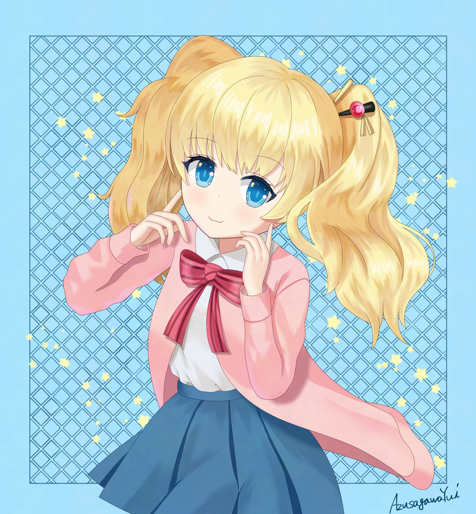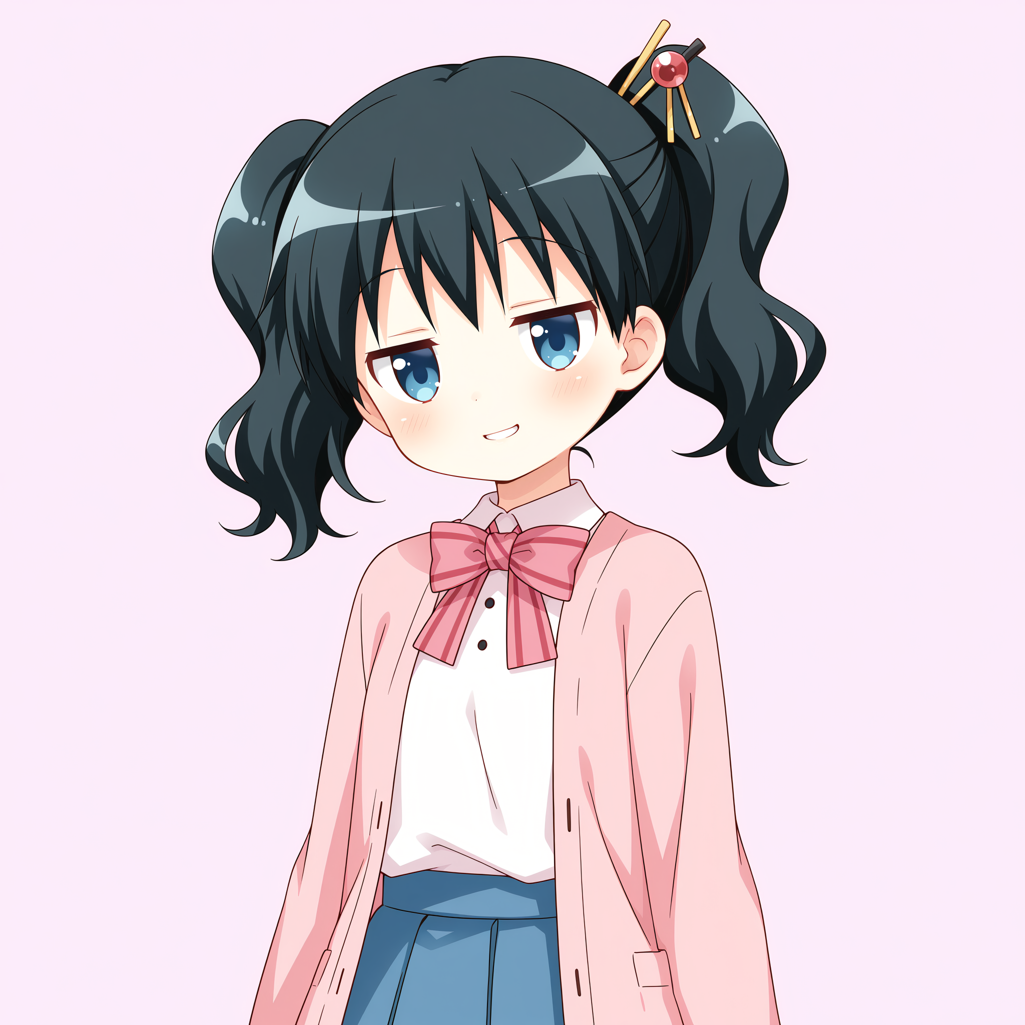 she looks like the blue one from powerpuff girls