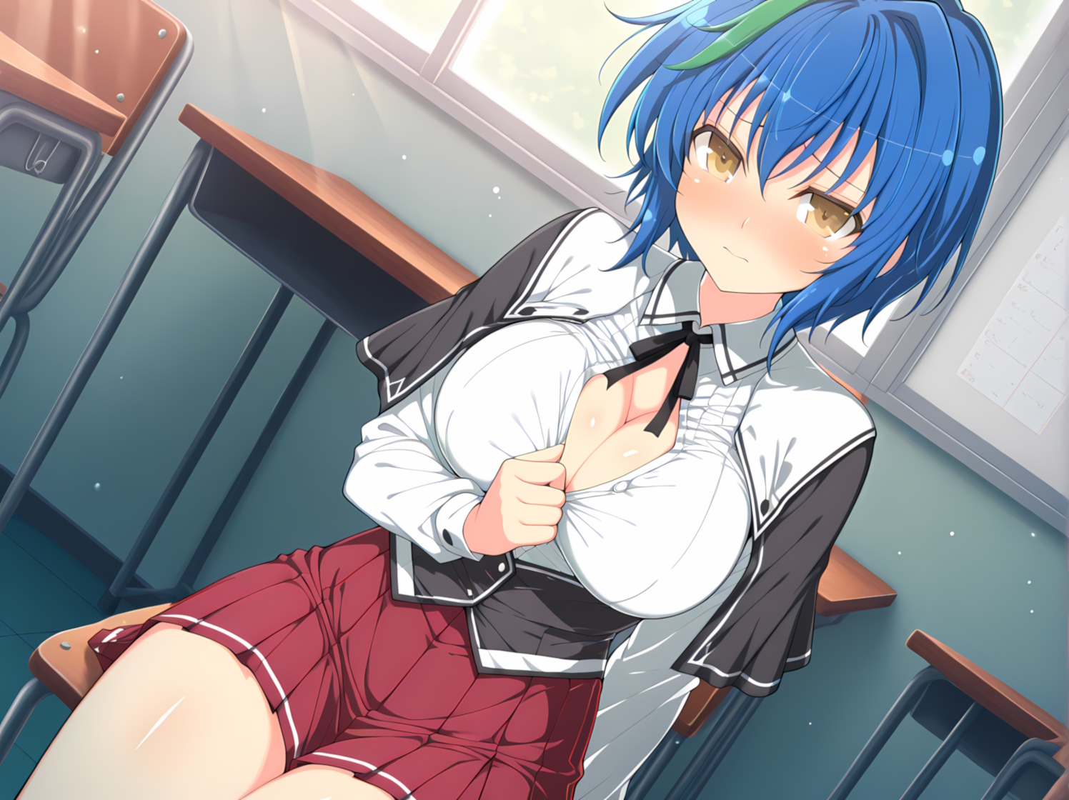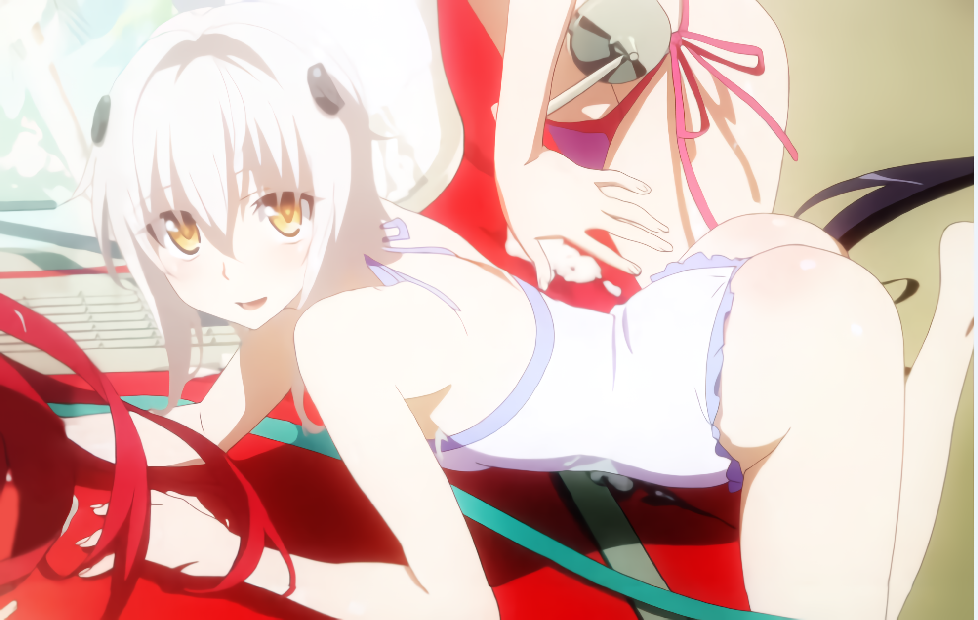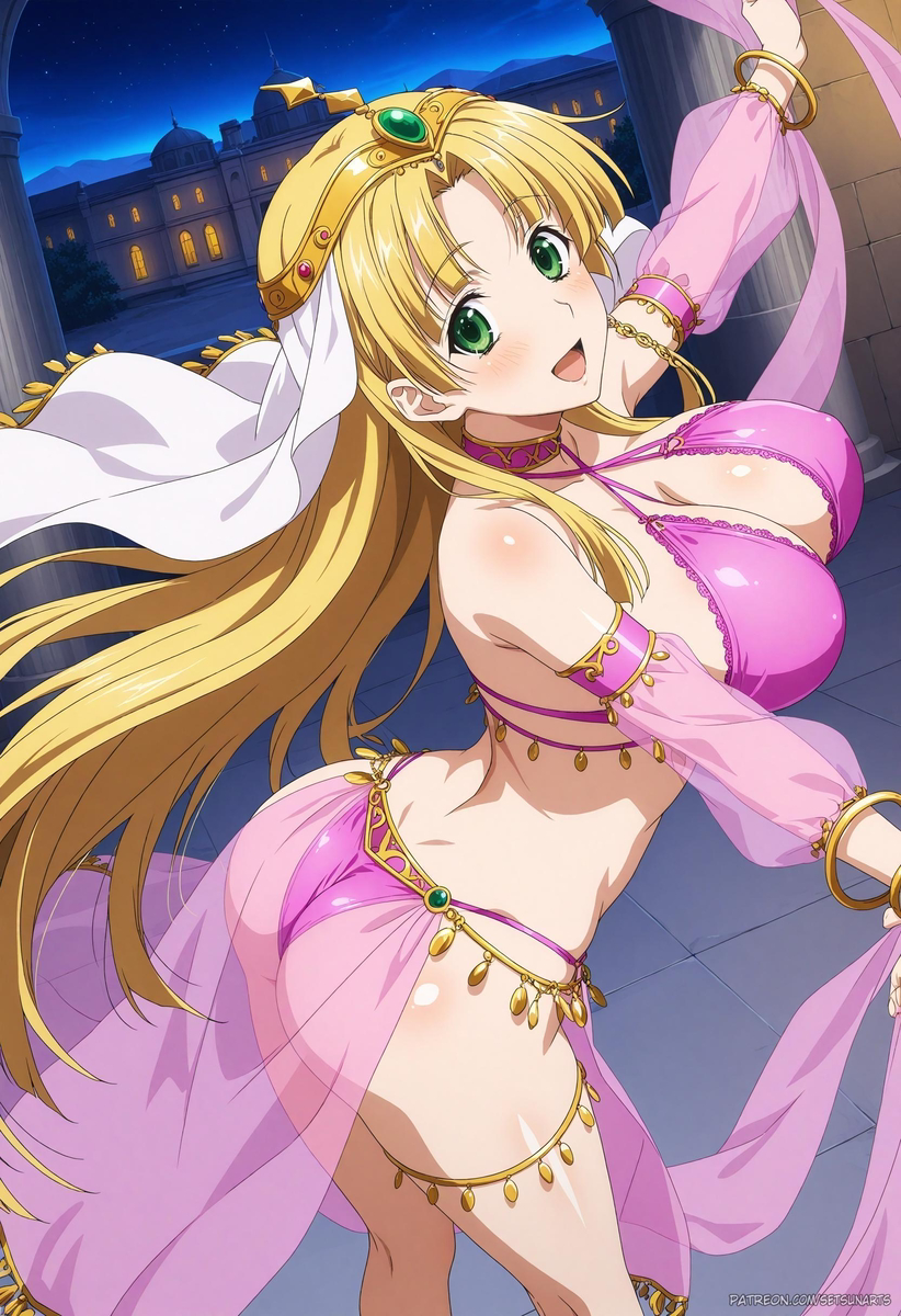 >>287268091She's the best girl but I hate how inconsistent her breast size is. Its either a B Cup or double Ds. Also dress break is such a goated move and I wish more ecchi series used it.