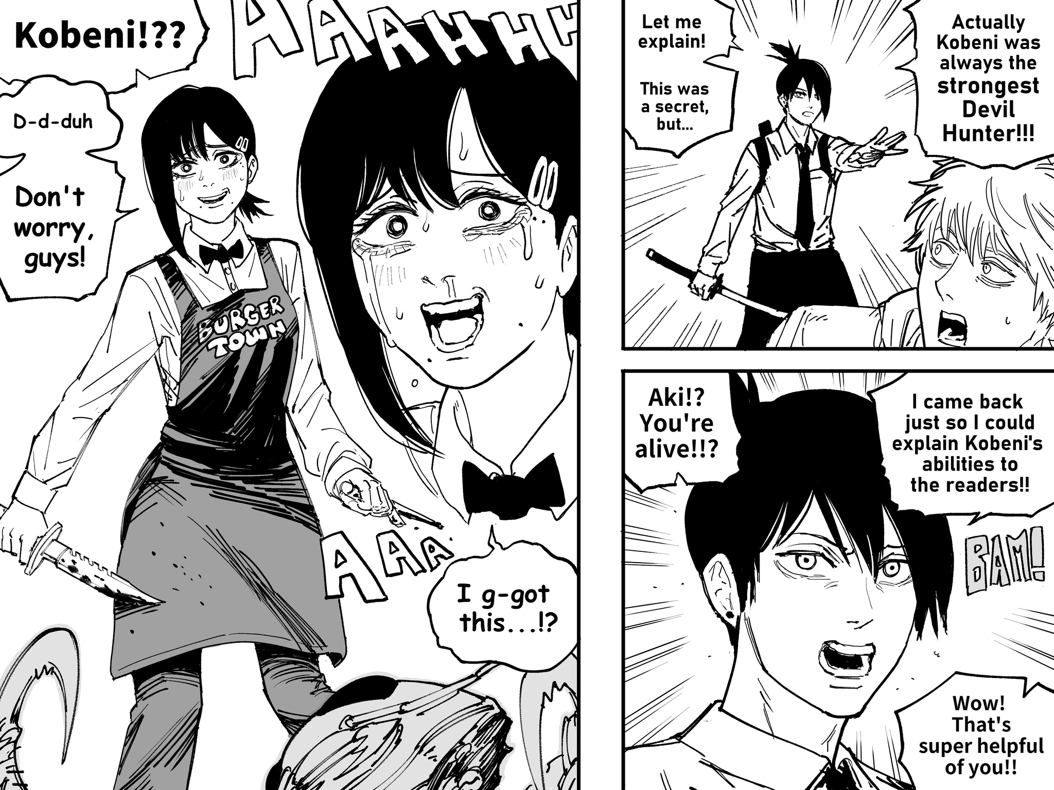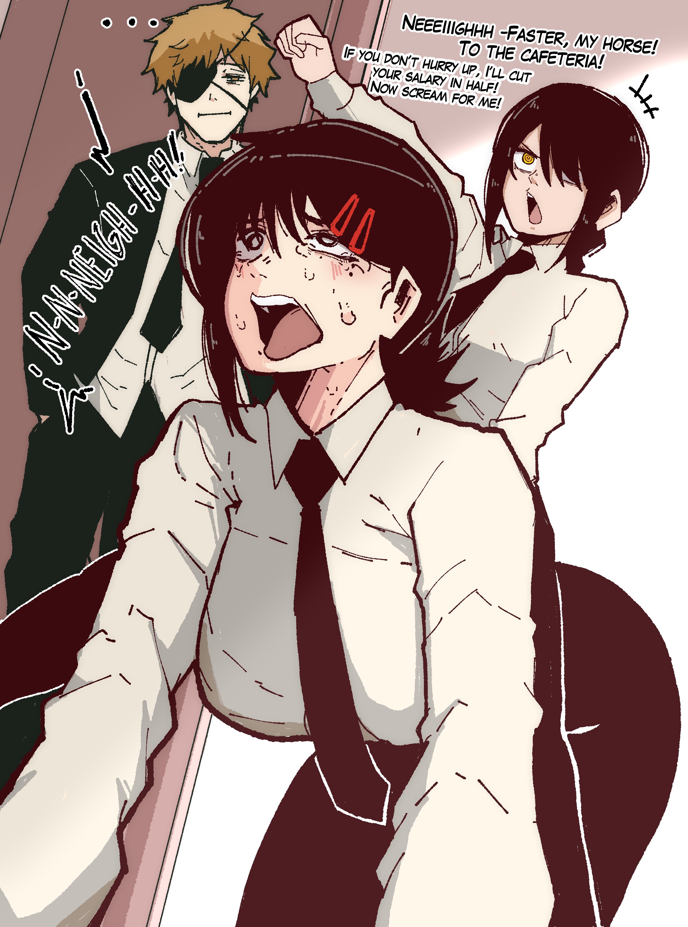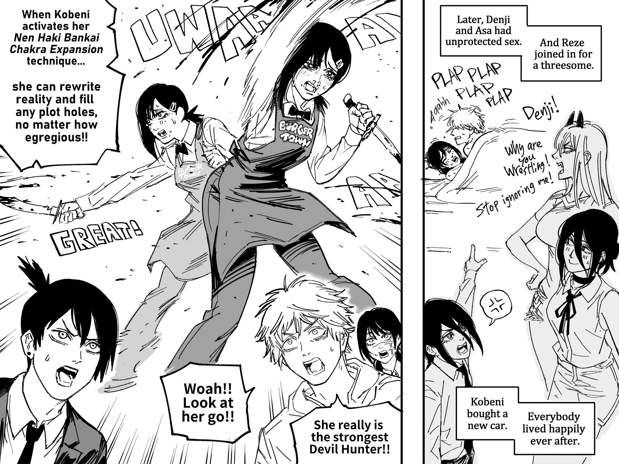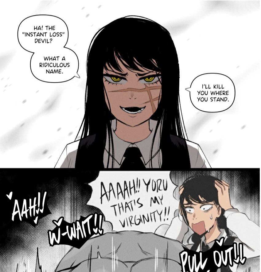 Denji busy plapping Power & Nayuta while anons are autistically screeching about the writing or something.