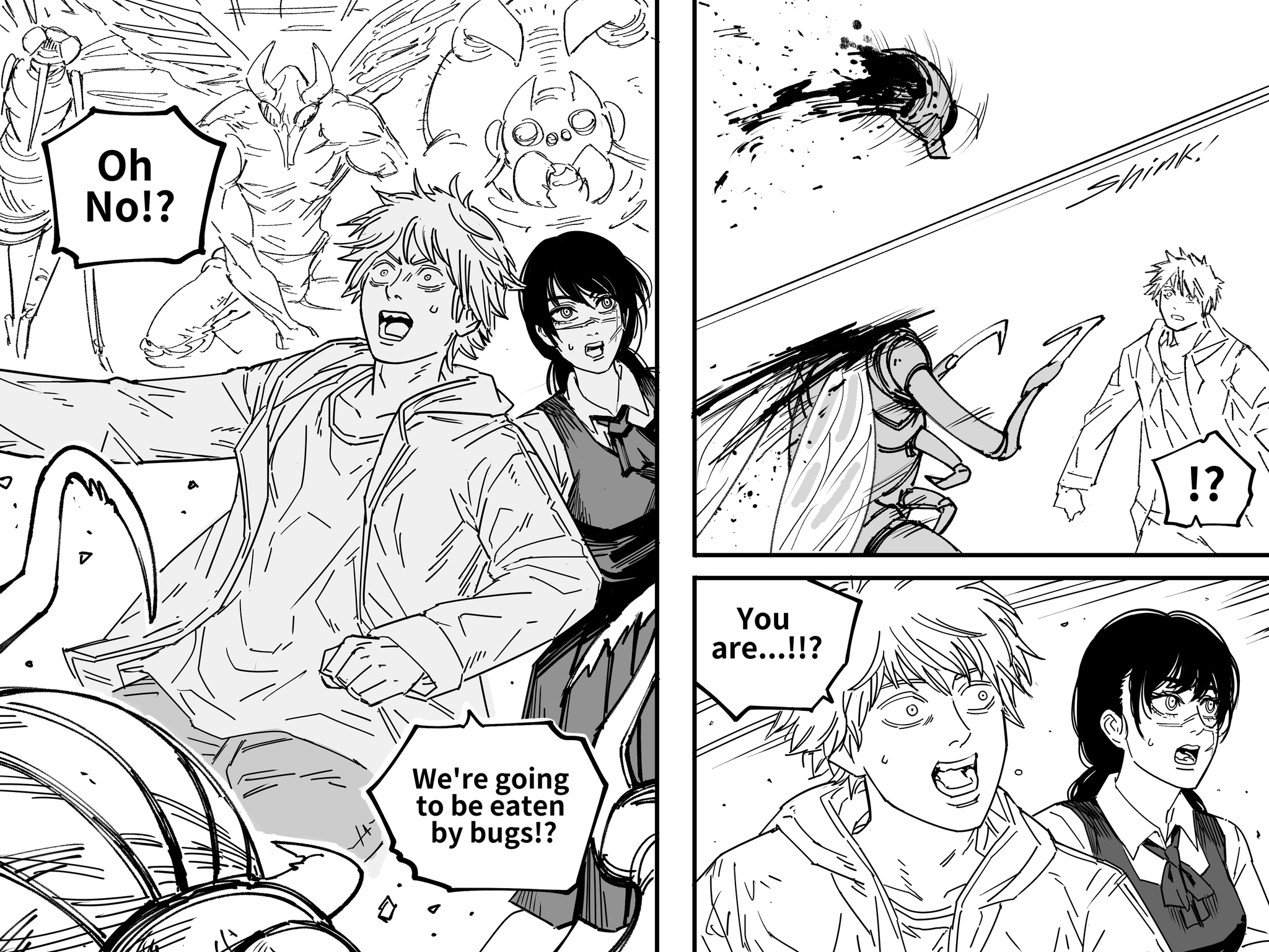 Isekai Quartet, but instead of isekai protags it's the protags of mangas with shitty endings.The Shit Quartet.Denji/Asa, Eren, Thorfinn (Vinland Saga), Emma (Promised Neverland)