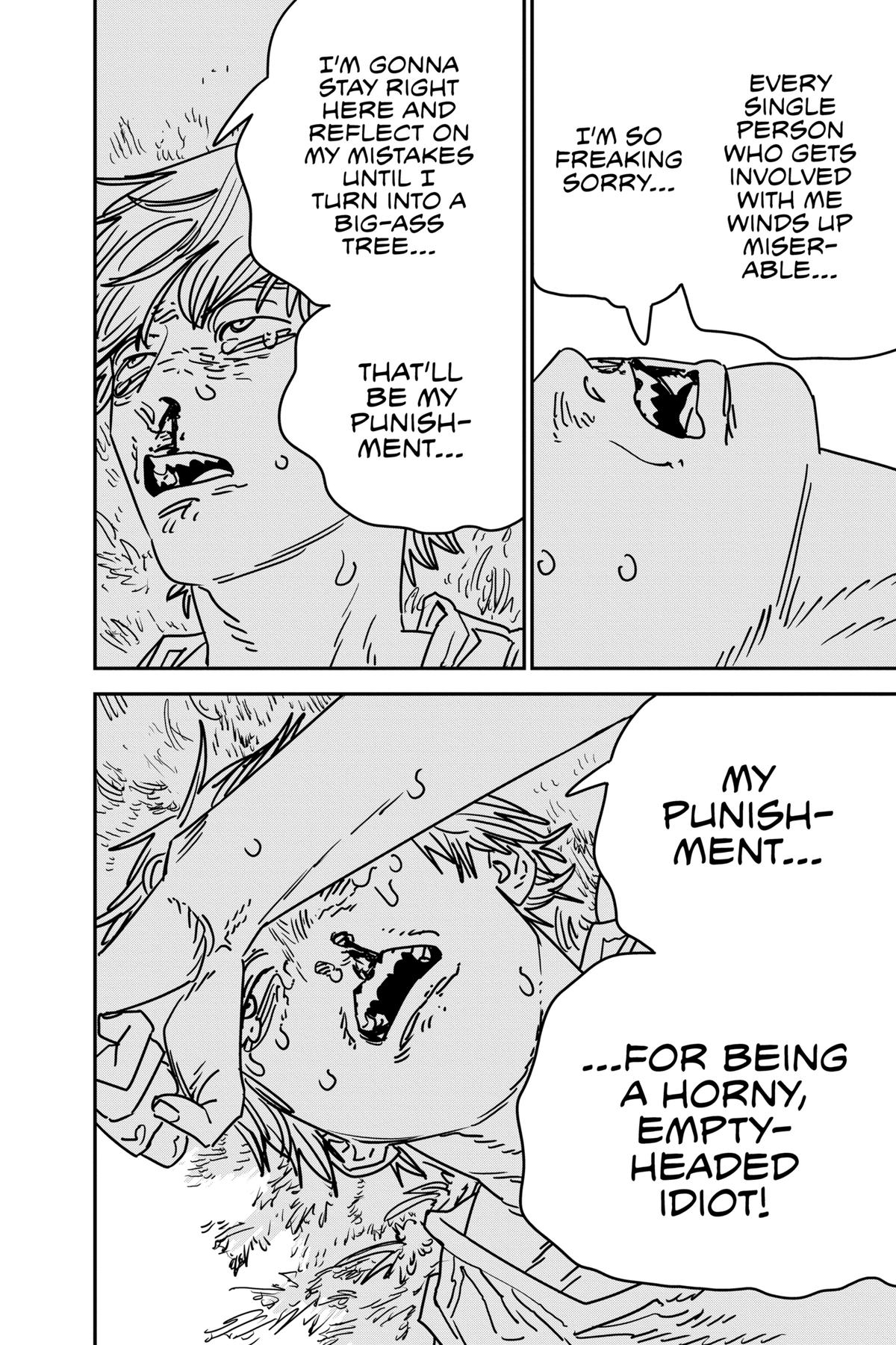 >>287258075Pochita really should have hit the reset button after Denji saw Nayuta's severed head on a sushi tray, he was fucked after that.Granted, chapter 231 reads more as a statement from the author than anything else.