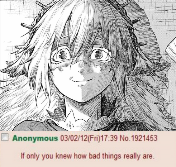 >>287259103That's total bullshit if he's just part of the dream.>>287259347>angsty edgelord arc coming to an endThank God.